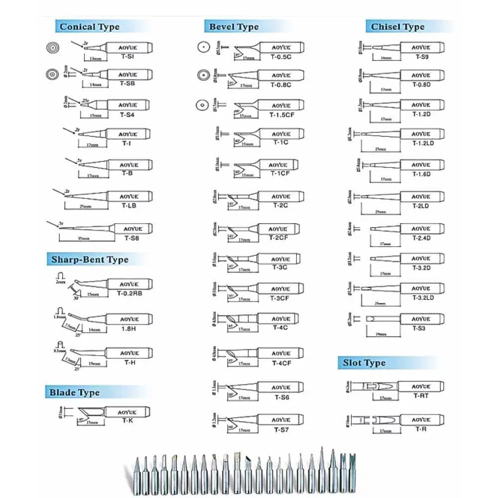 TIP ΓΙΑ ΤΗΝ ΑΝΑΒΑΘΜΙΣΗ ΠΡΟΪΟΝΤΟΣ, ΧΡΗΣΙΜΟΠΟΙΕΙΤΕ ΓΝΗΣΙΕΣ ΜΥΤΕΣ AOYUE Τα μόνα με 3 χρόνια Εγγύηση! Συμβατό με όλες τις γνήσιες μύτες AOYUE. η εγγύηση 3 ετών αφορά το σώμα του μηχανήματος και όχι τα αναλώσιμα στελέχη κολλητηριού, θερμού αέρα, και αναρρόφησης. Υπάρχουν διαθέσιμα ανταλλακτικά αναλώσιμα για τα στελέχη σε ιδιαίτερα χαμηλές τιμές. Η καταπόνηση είναι ελάχιστη για συνήθη χρήση του εργαλείου. Όταν δεν χρησιμοποιείται για πολύ ώρα το εργαλείο απενεργοποιείτε την αντίσταση ή όλη την συσκευή για την αποφυγή της περιττής καταπόνησης και την εξοικονόμηση ενέργειας. Μην χτυπάτε το στέλεχος όταν είναι ζεστό. Προστατέψτε ευαίσθητες επιφάνειες και ανθρώπινο σώμα από την υψηλή θερμοκρασία. Τα στελέχη έχουν 1 έτος εγγύηση με την αγορά του σταθμού και 6 μήνες όταν αγοραστούν ως ανταλλακτικά.