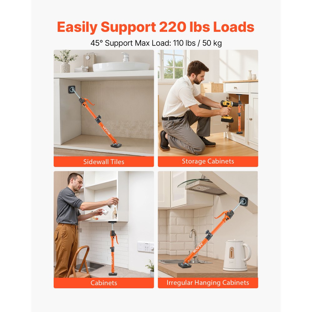 Ρυθμιζόμενο ύψος και γωνία: Το ύψος του στύλου στήριξης τρίτου χεριού ρυθμίζεται από 18,9-29,5 ίντσες για να ταιριάζει σε διάφορες εργασίες. Η κεφαλή έχει κλίση έως και 45°, διευκολύνοντας την υποστήριξη οροφών, πλαγιών, σκαλοπατιών και ακανόνιστων χώρων. Ισχυρή ικανότητα φόρτωσης 220 λίβρες: Κάθε τηλεσκοπικός στύλος στήριξης αντέχει έως και 220 λίβρες, παρέχοντας σταθερή στήριξη για γυψοσανίδα, ράφια ή ξυλουργικές εργασίες. Ιδανικό για εργοτάξια, προσωρινές ενισχύσεις ή ανακαινίσεις σπιτιών. Ασφαλές και εύκολο στη χρήση: Συναρμολογείται σε λίγα λεπτά με το εγχειρίδιο που περιλαμβάνεται. Το σύστημα τριπλής ασφάλισης του γρύλου του ντουλαπιού αποτρέπει την ολίσθηση υπό φορτίο. Διαθέτει άνετη λαβή, αντιολισθητικό αφρό, ράβδο γρήγορης απελευθέρωσης και αντιολισθητική επάνω πλάκα. Φορητή ευκολία: Ο γρύλος εγκατάστασης ντουλαπιού μας διαθέτει αδιάβροχη, ανθεκτική στα σκισίματα τσάντα μεταφοράς Oxford για εύκολη μεταφορά. Ιδανικός για εργασίες πολλαπλών σημείων σε εργοτάξια ή σε πολλά δωμάτια στο σπίτι - το επιπλέον χέρι βοήθειας οπουδήποτε Σταθερή στήριξη: Ο χοντρός στύλος στήριξης από ανθρακούχο χάλυβα με μεγάλο πέλμα TPR κατανέμει το βάρος ομοιόμορφα, συγκρατεί με ασφάλεια τα δάπεδα και παραμένει στη θέση του χωρίς να λυγίζει ή να γλιστράει για μακροπρόθεσμη σταθερότητα.