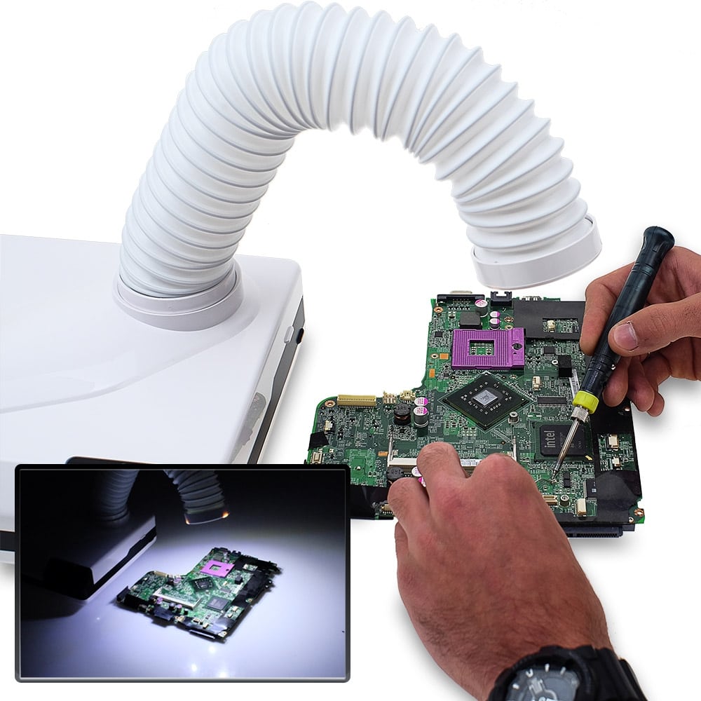 Αναρρόφηση καπνού και αιωρουμένων σωματιδίων σκόνης και ταυτόχρονα φωτισμός της επιφάνειας για βέλτιστη εργονομία και χρήση. Περιέχει φίλτρο που συγκρατεί τους ρύπους.