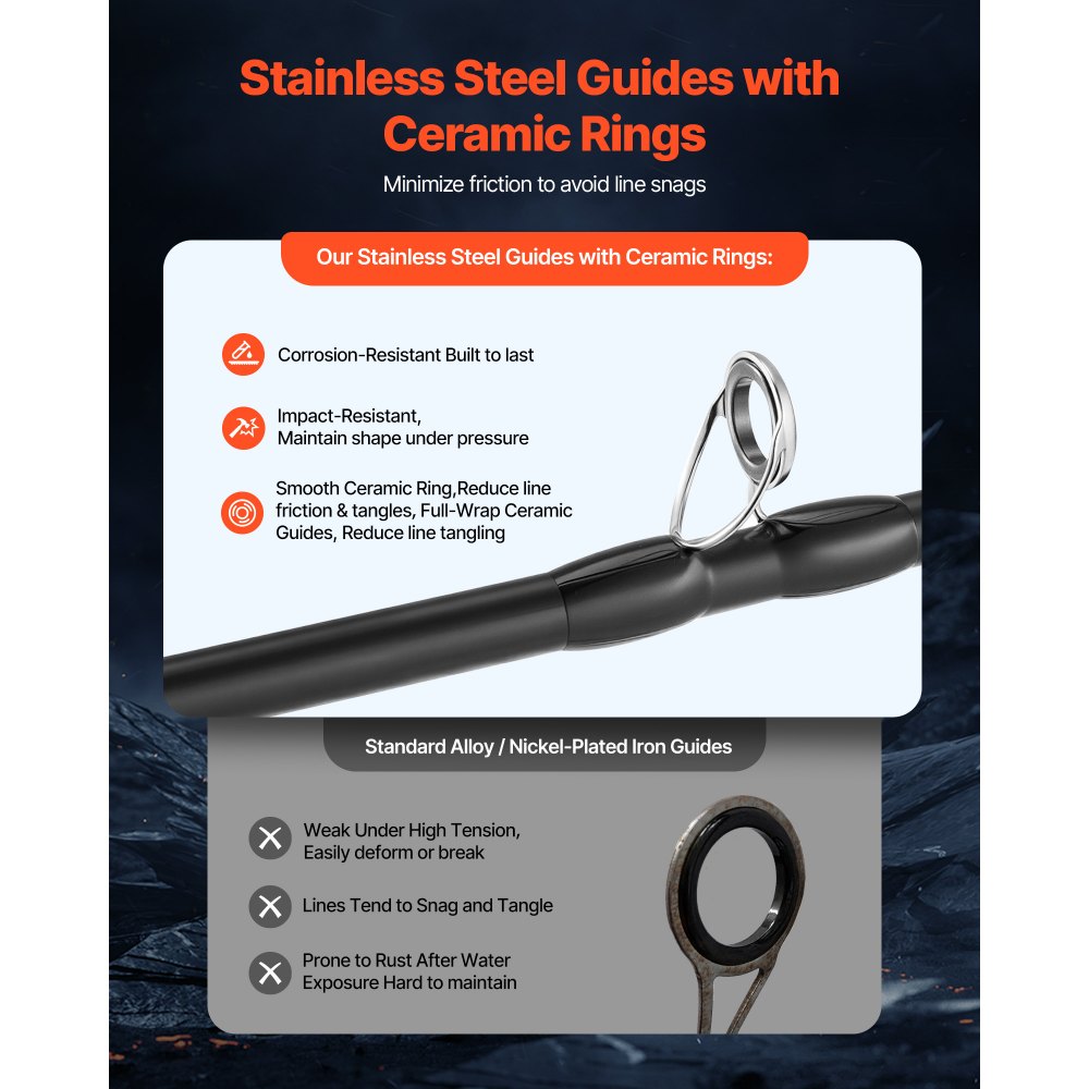 Συνδυασμός ακριβείας ρίψεων: Ο κορυφαίος συνδυασμός καλαμιού και μηχανισμού ψαρέματος προσφέρει ένα καλάμι 2 τεμαχίων 6,5ft/2m και έναν μηχανισμό ακριβείας ρίψεων, προσφέροντας ομαλή και αξιόπιστη απόδοση. Ο χειροτροχός ψαρέματος είναι για δεξιόχειρες. Ταιριάζει σε όλα τα στυλ ψαρέματος, προσφέροντας ευελιξία και ευκολία σε κάθε ψαρά. Σχεδιασμός Υλικού Premium: Αυτός ο συνδυασμός καλαμιού ψαρέματος διαθέτει ένα ανθεκτικό και ευαίσθητο καλάμι άνθρακα IM7, ελαφρύ αλλά ισχυρό, προσφέροντας εξαιρετική ευαισθησία για την ανίχνευση ανεπαίσθητων δαγκωμάτων. Η λαβή από φελλό είναι αντιολισθητική και απορροφά τον ιδρώτα, εξασφαλίζοντας άνετο κράτημα για μια πιο ευχάριστη εμπειρία ψαρέματος. Ακριβής έλεγχος: Με ρυθμιζόμενο μαγνητικό σύστημα πέδησης πολλαπλών σταδίων, αυτό το καλάμι ψαρέματος λαβρακιού προσφέρει ακριβή έλεγχο της ταχύτητας απελευθέρωσης της πετονιάς, αποτρέποντας τον τζόγο. Είτε ψαρεύετε με ρολό είτε με ρολό, μπορείτε να το διαχειριστείτε αβίαστα, εξασφαλίζοντας μια πιο σίγουρη και χαλαρή εμπειρία ψαρέματος. Αποδοτική Απόδοση: Εξοπλισμένο με 6 + 1 ρουλεμάν υψηλής ακρίβειας και σχέση μετάδοσης 7.0:1, αυτό το καλάμι ψαρέματος γλυκού νερού εξασφαλίζει ομαλή και αποτελεσματική ρίψη και ανάκτηση πετονιάς. Χειρίζεται εύκολα μια ποικιλία ειδών ψαριών όπως λαβράκια με μεγάλο και μικρό στόμα, βελτιώνοντας τη συνολική σας εμπειρία ψαρέματος. Κεραμικός δακτύλιος οδηγού: Κατασκευασμένοι από ανθεκτικό ανοξείδωτο ατσάλι, οι οδηγοί πετονιάς διαθέτουν εξαιρετική αντοχή στη διάβρωση και διατηρούν το σχήμα τους ακόμα και υπό ισχυρές κρούσεις. Οι λείες κεραμικές δακτύλιοι ελαχιστοποιούν το μπλέξιμο της πετονιάς, εξασφαλίζοντας μια πιο ομαλή και αποτελεσματική εμπειρία ψαρέματος.