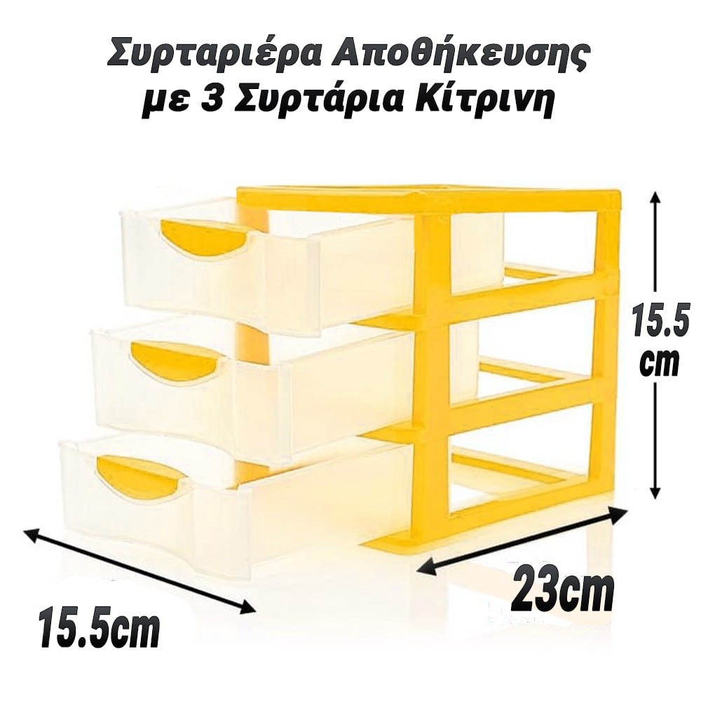 Συρταριέρα Αποθήκευσης με 3 Συρτάρια Κίτρινη