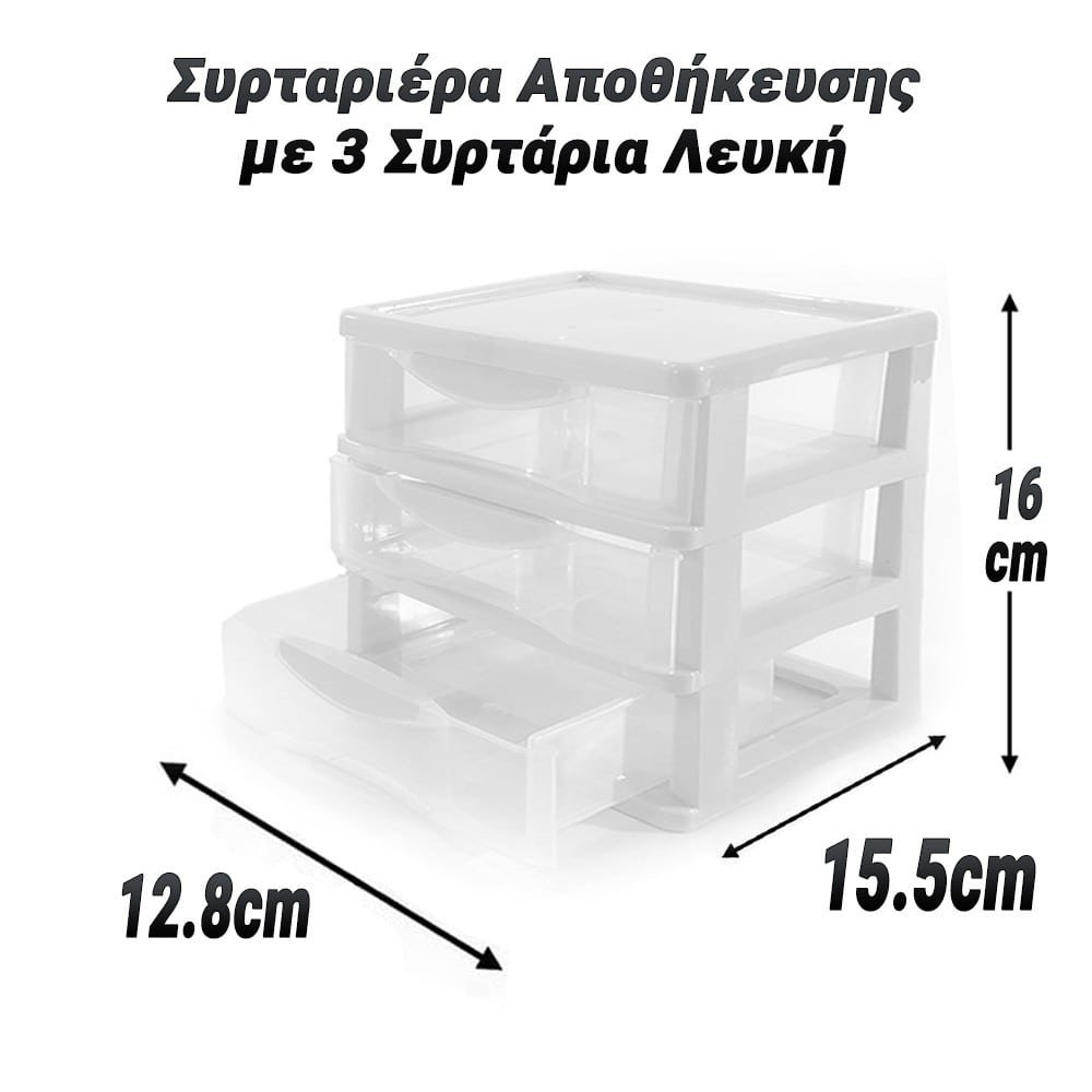 Συρταριέρα Αποθήκευσης με 3 Συρτάρια Λευκή