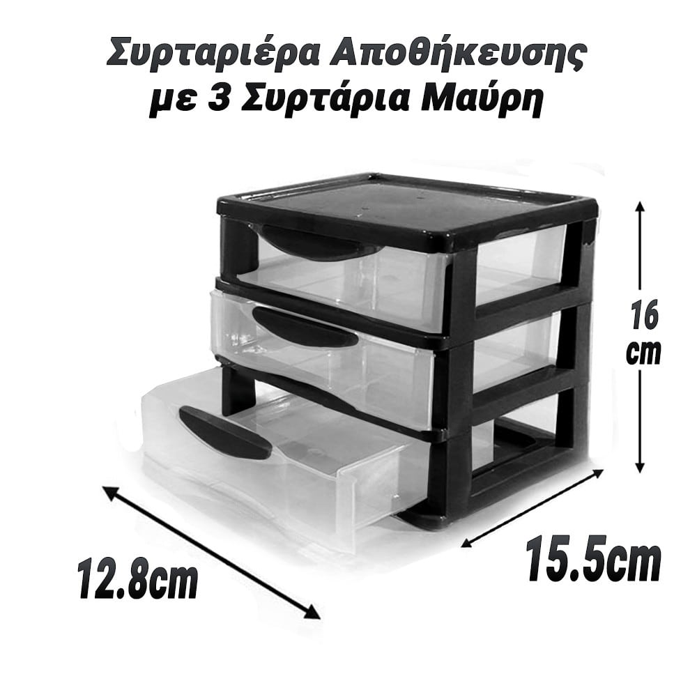 Συρταριέρα Αποθήκευσης με 3 Συρτάρια Μαύρη