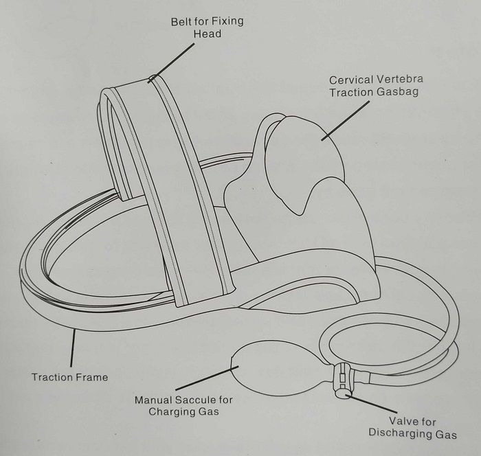 Η συσκευή χρησιμοποιεί μια αποτελεσματική μέθοδο αποσυμπίεσης με μαξιλάρι αέρος, για την ανακούφιση των πόνων του αυχένα και των ώμων που προκαλούνται από κούραση, τεντώματα, οστεοαρθρίτιδα, πονοκεφάλους και κακή στάση σώματος.