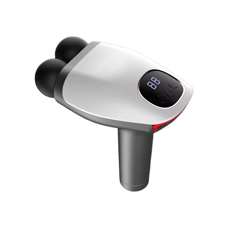Επαναστατική συσκευή μασάζ και μυοχαλάρωσης Fascial Gun με διπλή στρογγυλή κεφαλή με μαλακή αφρώδη επένδυση για εφαρμογή σε όλα τα σημεία του σώματος που επιθυμείτε.