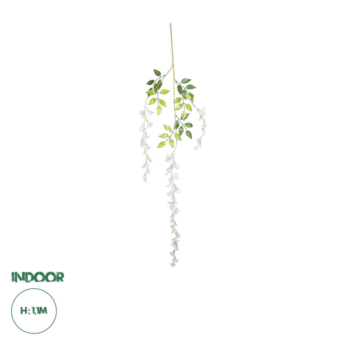 GloboStar® 09032 Τεχνητό Κρεμαστό Φυτό Διακοσμητική Γιρλάντα Μήκους 1.1 μέτρων με 3 X Κλαδιά Βιστέρια Λευκή