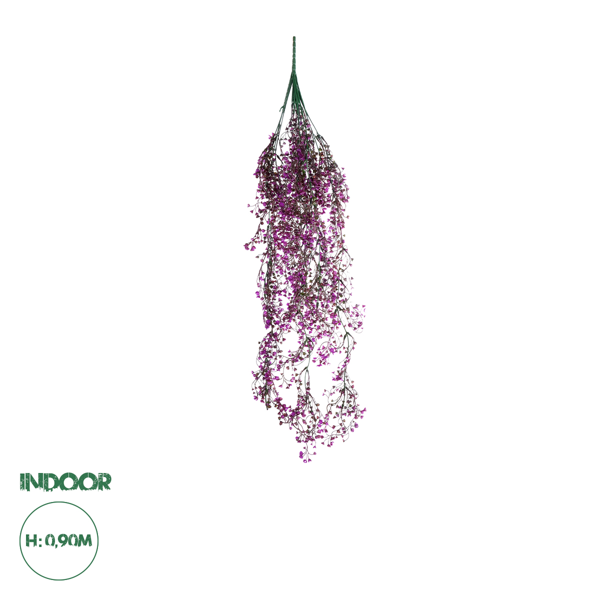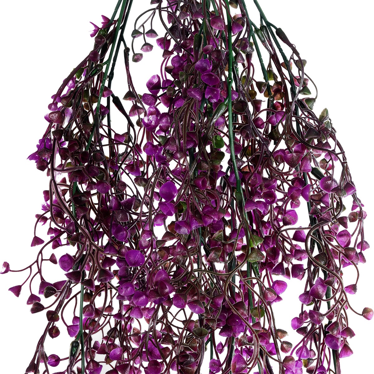 GloboStar® 09036 Τεχνητό Κρεμαστό Φυτό Διακοσμητική Γιρλάντα Μήκους 1.2 μέτρων με 13 X Κλαδιά Πυξός Πράσινο Μωβ
