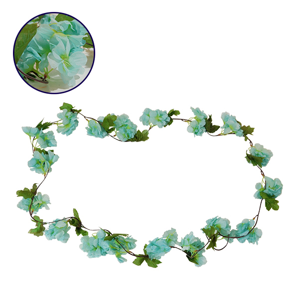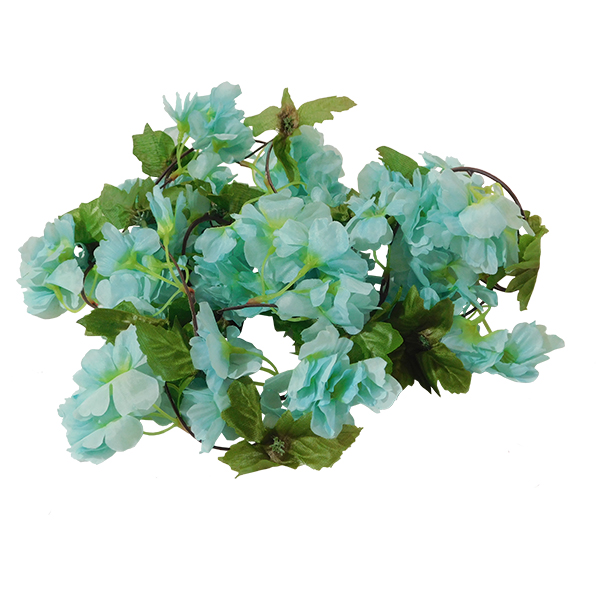 GloboStar® 09023 Τεχνητό Κρεμαστό Φυτό Διακοσμητική Γιρλάντα Μήκους 2.2 μέτρων με 18 X Άνθη Κερασιάς Γαλάζιο