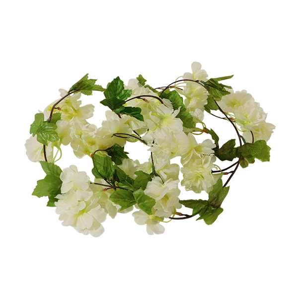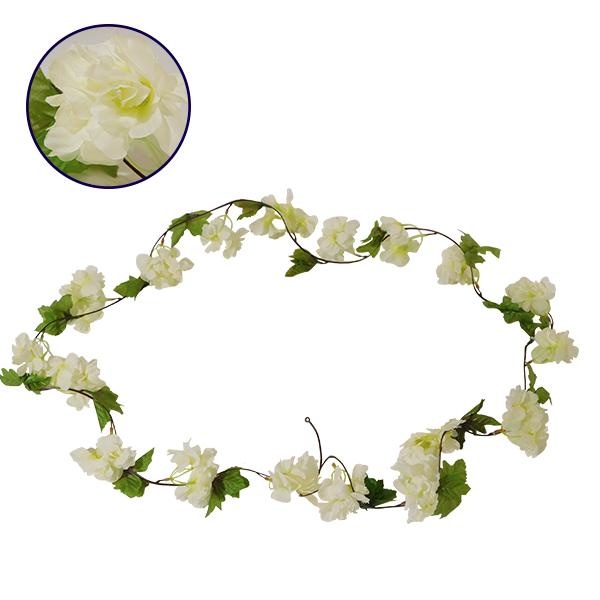 GloboStar® 09025 Τεχνητό Κρεμαστό Φυτό Διακοσμητική Γιρλάντα Μήκους 2.2 μέτρων με 18 X Άνθη Κερασιάς Λευκό