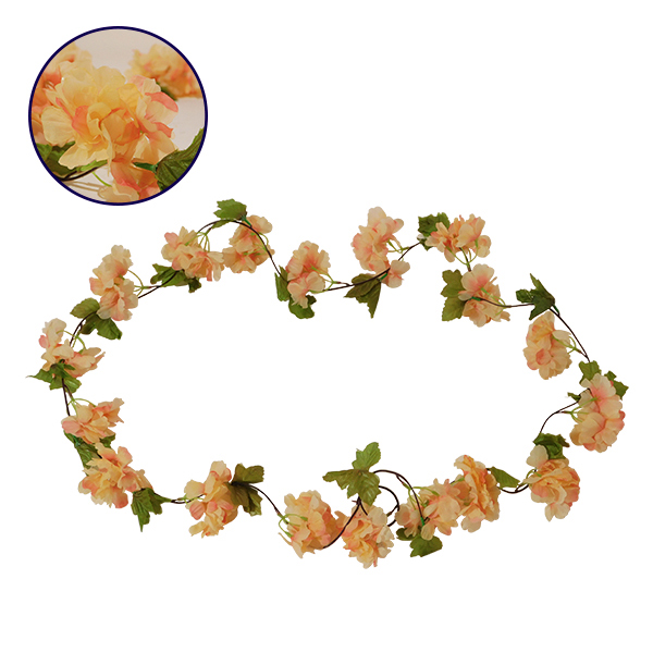 GloboStar® 09022 Τεχνητό Κρεμαστό Φυτό Διακοσμητική Γιρλάντα Μήκους 2.2 μέτρων με 18 X Άνθη Κερασιάς Σομόν