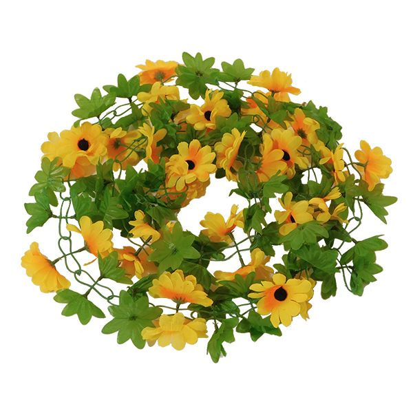 GloboStar® 09028 Τεχνητό Κρεμαστό Φυτό Διακοσμητική Γιρλάντα Μήκους 2.2 μέτρων με 30 X Μεσαία Ηλιοτρόπια Κίτρινα