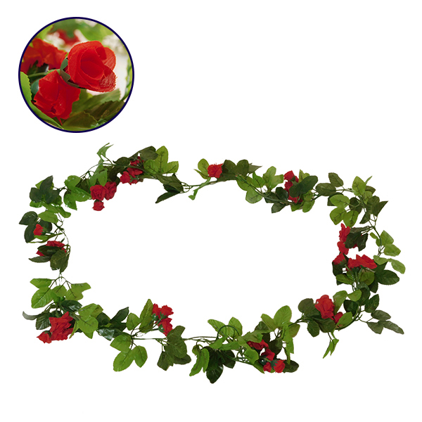 GloboStar® 09014 Τεχνητό Κρεμαστό Φυτό Διακοσμητική Γιρλάντα Μήκους 2.2 μέτρων με 33 X Μικρά Τριαντάφυλλα Κόκκινα