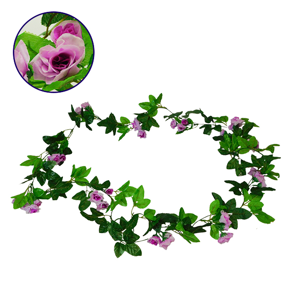 GloboStar® 09016 Τεχνητό Κρεμαστό Φυτό Διακοσμητική Γιρλάντα Μήκους 2.2 μέτρων με 33 X Μικρά Τριαντάφυλλα Μωβ Λευκά