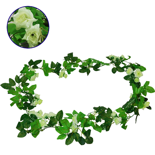 GloboStar® 09019 Τεχνητό Κρεμαστό Φυτό Διακοσμητική Γιρλάντα Μήκους 2.2 μέτρων με 33 X Μικρά Τριαντάφυλλα Πράσινα Λευκά
