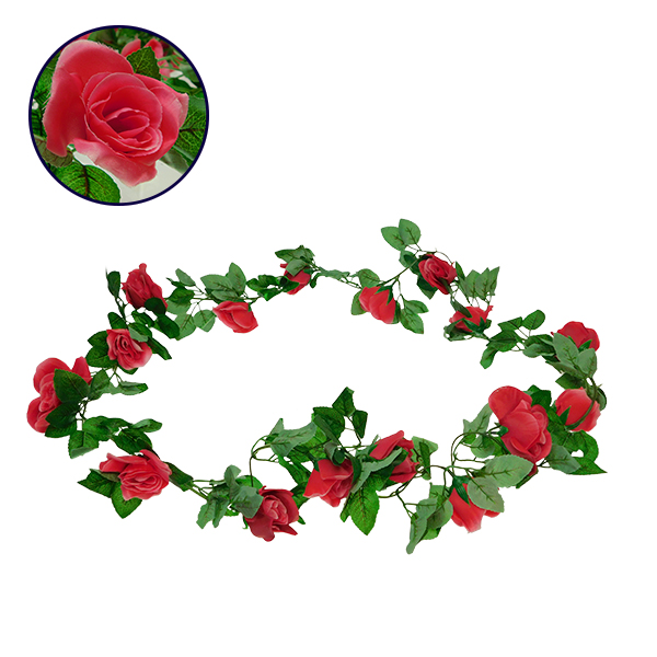 GloboStar® 09008 Τεχνητό Κρεμαστό Φυτό Διακοσμητική Γιρλάντα Μήκους 2 μέτρων με 16 X Μεγάλα Τριαντάφυλλα Φούξια