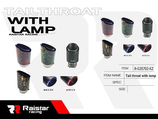 Τελικό εξάτμισης-κάλυμμα Raistar Racing (tail throat) με ενσωματωμένο φως και βελτιωμένη σχεδίαση εκτόνωσης.