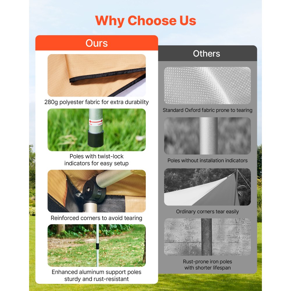 Αριθμός μοντέλου αντικειμένου: ATSA27016Τύπος τέντας: ΑναδιπλούμενηΚύριο υλικό: ύφασμα πολυεστέρα 280g + πλαίσιο αλουμινίουΕπίπεδο αδιαβροχοποίησης: PU3000 mmΠροστασία από τον ήλιο: UV50+Χρώμα: ΜπεζΔιαστάσεις προϊόντος (Μ x Π x Υ): 10,47 x 10,07 x 6,89 πόδια / 3,19 × 3,07 × 2,10 μ.