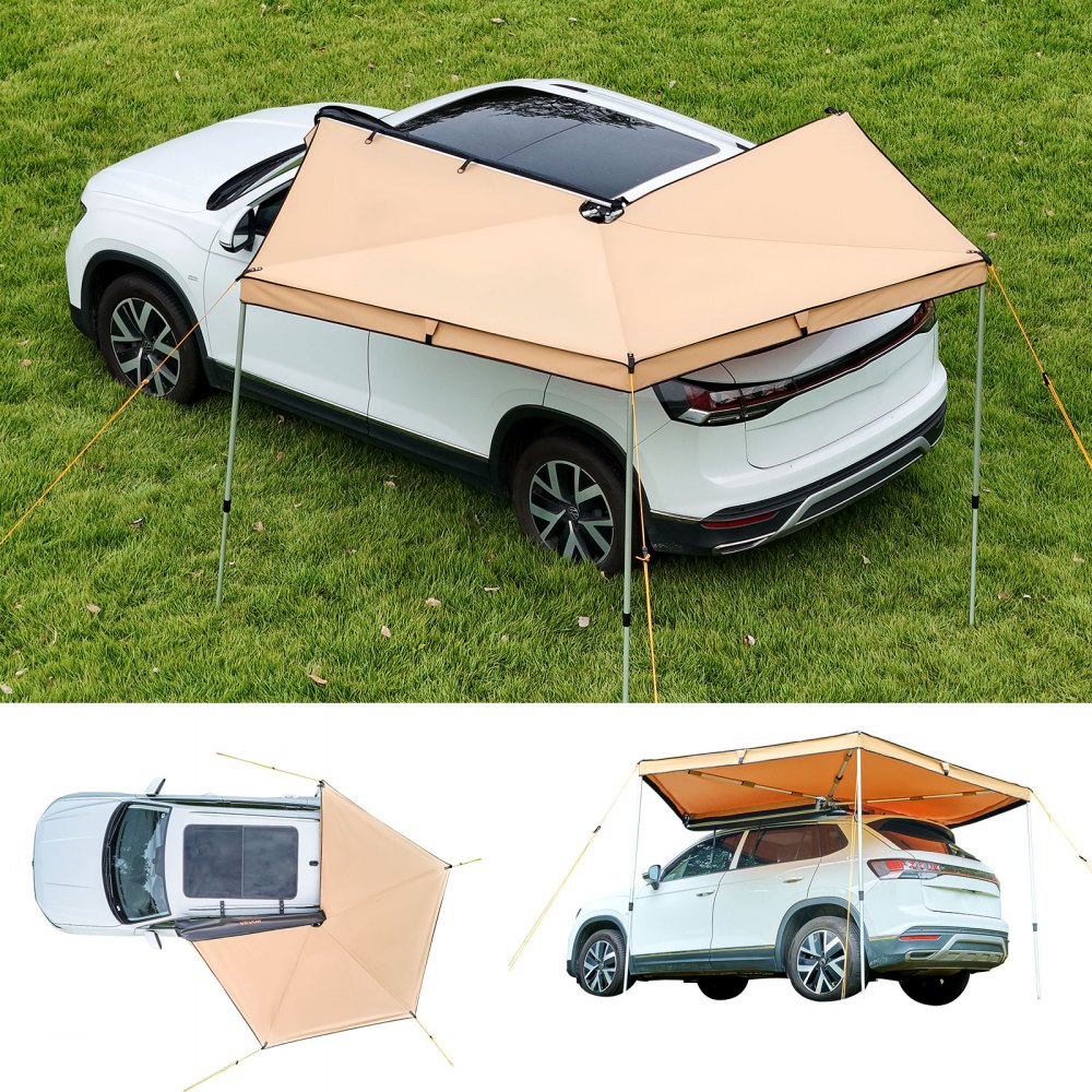 Ευρεία Κάλυψη: Η τέντα οχήματος παρέχει σκίαση 270° με στέγαστρο 10,5 x 5,3 πόδια, προσφέροντας στέγη 52,74 τετραγωνικά πόδια / 4,9 ㎡. Με ύψος 6,89 πόδια, φιλοξενεί εύκολα οικογένεια και φίλους για κατασκήνωση, πικνίκ και υπαίθριες συγκεντρώσεις. Προστασία από όλες τις καιρικές συνθήκες: Κατασκευασμένη από ύφασμα πολυεστέρα 280G, αδιάβροχη επίστρωση PU3000mm και προστασία από τον ήλιο UV50+, αυτή η τέντα αυτοκινήτου μπλοκάρει την έντονη βροχή και τον έντονο ήλιο, διατηρώντας τον χώρο σας στεγνό και δροσερό. Ανθεκτική και σταθερή: Η τέντα φορτηγού 270 μοιρών διαθέτει παχύ, ανθεκτικό στη σκουριά πλαίσιο από κράμα αλουμινίου σε συνδυασμό με βαρέως τύπου πασσάλους και σχοινιά ασφαλείας, εξασφαλίζοντας αξιόπιστη σταθερότητα ακόμη και σε σκληρές καιρικές συνθήκες. Γρήγορη εγκατάσταση: Η τηλεσκοπική δομή με προεγκατεστημένες κορυφές και στύλους στήριξης απλοποιεί την εγκατάσταση. Η τέντα SUV μας περιλαμβάνει λεπτομερείς οδηγίες, επιτρέποντας ακόμη και σε αρχάριους να την εγκαταστήσουν σε λίγα λεπτά. Υψηλή Συμβατότητα: Η τέντα εδάφους μας ταιριάζει σε οχήματα με σχάρες οροφής, εγκάρσιες ράβδους ή πλατφόρμες οροφής, παρέχοντας άφθονο, σταθερό χώρο για κατασκήνωση, πικνίκ, οικογενειακές συγκεντρώσεις ή οδικά ταξίδια.
