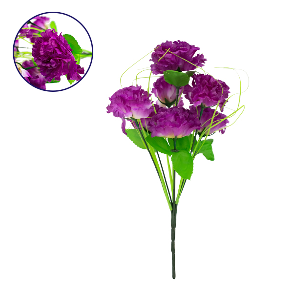 GloboStar® 09075 Τεχνητό Φυτό Διακοσμητικό Μπουκέτο Βιολετί M20cm x Υ35cm Π20cm με 7 X Γαρύφαλλα