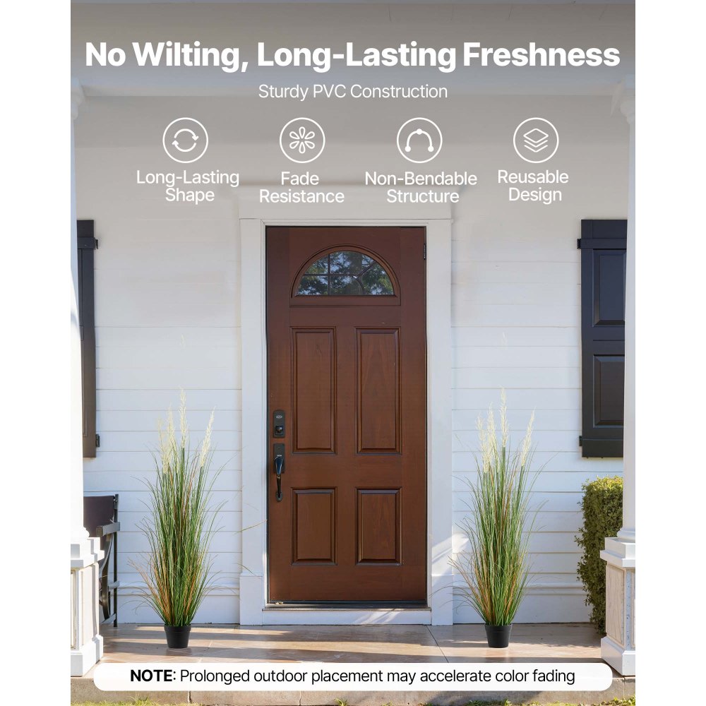 Φρέσκια Φυσική Διακόσμηση: Αυτό το σετ 2 φυτών τεχνητού γρασιδιού έχει ύψος 119 εκ. (4 πόδια) και κάθε στέλεχος διαθέτει πέντε λουλούδια καλαμιού και γρασίδι. Προσφέρει μια φυσική, κομψή πινελιά στον χώρο σας, δημιουργώντας ένα φυσικό περιβάλλον. Ρεαλιστικό & Φυσικό: Σχεδιασμένο με ρεαλιστικά χρώματα και λεπτομερείς υφές, αυτό το ψεύτικο γρασίδι προσφέρει μια ρεαλιστική εμφάνιση και αίσθηση. Φέρνει την ομορφιά και τη ζωντάνια του πραγματικού πράσινου, δημιουργώντας μια φρέσκια και ζωντανή ατμόσφαιρα. Ανθεκτικό σαν καινούργιο: Κατασκευασμένο από φύλλα PVC υψηλής ποιότητας, αυτό το τεχνητό φυτό σε γλάστρα δεν μαραίνεται, δεν ξεθωριάζει και δεν λυγίζει εύκολα. Διατηρεί μια σταθερή εμφάνιση τόσο για εσωτερική όσο και για εξωτερική διακόσμηση. Σημείωση: η παρατεταμένη έκθεση σε εξωτερικούς χώρους μπορεί να προκαλέσει ταχύτερο ξεθώριασμα. Εύκολη συντήρηση: Δεν χρειάζεται πότισμα, λίπανση ή κλάδεμα. Το διακοσμητικό τεχνητό γρασίδι μας παραμένει πράσινο ανεξάρτητα από το κλίμα. Απαιτείται μόνο ένα γρήγορο σκούπισμα με ένα πανί για να καθαριστεί, επιτρέποντάς σας να απολαμβάνετε διαρκή πρασινάδα χωρίς την ταλαιπωρία. Έτοιμο προς χρήση: Αυτό το ρεαλιστικό φυτό γρασιδιού είναι εξοπλισμένο με μια ελαφριά και ανθεκτική πλαστική γλάστρα, χωρίς να χρειάζεται συναρμολόγηση. Απλώς ανοίξτε το κουτί και τοποθετήστε το για διακόσμηση. Ιδανικό για σπίτι, κήπο, βεράντα, ξενοδοχείο, εστιατόριο ή γραφείο για να προσθέσετε πρασινάδα και γοητεία.