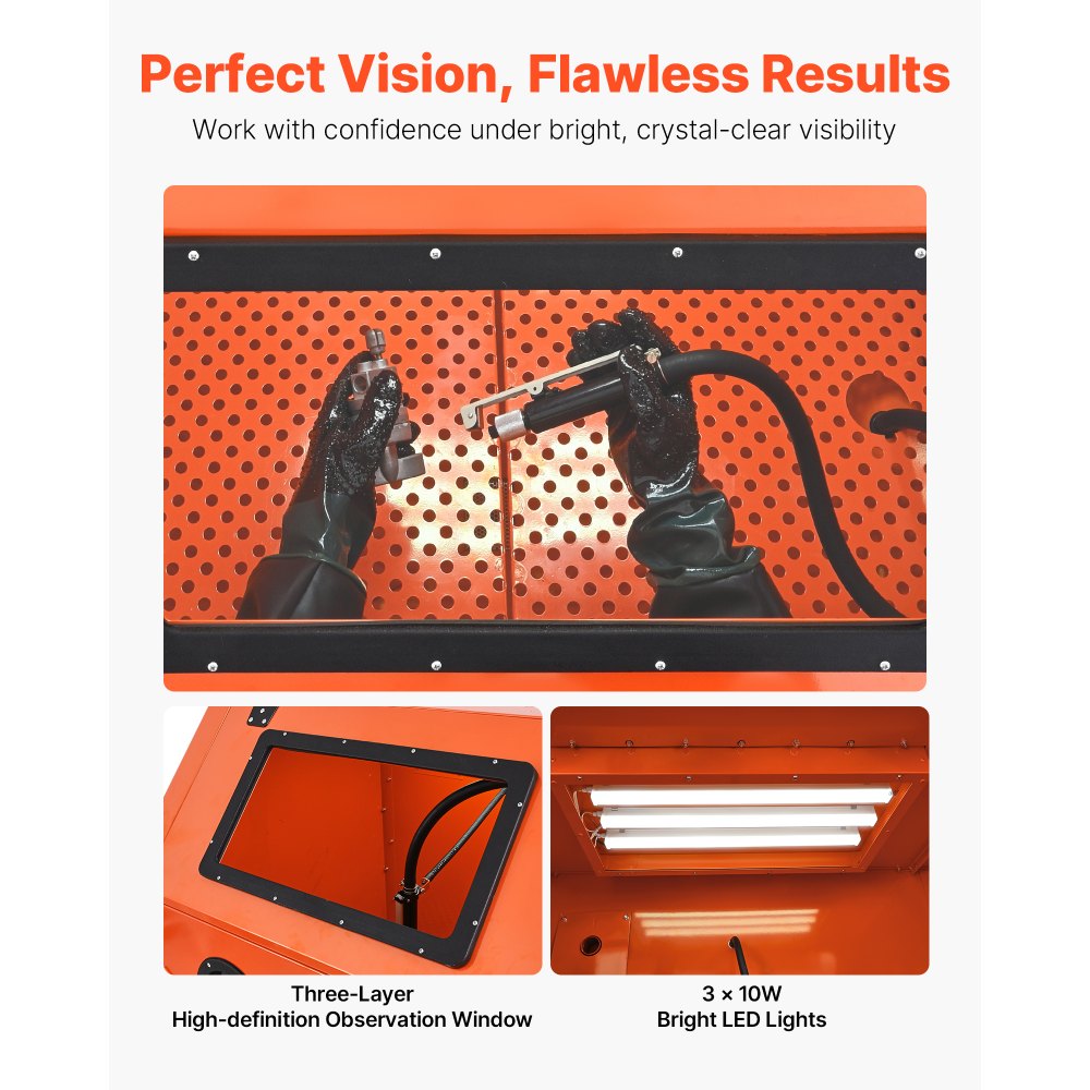 Ισχύς και Απόδοση Βιομηχανικού Επιπέδου: Απολαύστε ταχύτερο καθαρισμό με το επαγγελματικό σύστημα δεξαμενών υπό πίεση. Προσφέρει αμμοβολή υψηλής πίεσης για γρήγορη αφαίρεση σκουριάς, χρώματος και επιστρώσεων, εξασφαλίζοντας παράλληλα συνεπή αποτελέσματα τόσο για μικρές όσο και για μεγάλες εργασίες. Ευρύχωρο για υπερμεγέθη εξαρτήματα και ανθεκτική κατασκευή: Αντιμετωπίστε μεγάλα έργα με ευκολία μέσα στο τεράστιο εσωτερικό μας διαστάσεων 45,2" x 35,8" x 35,4". Κατασκευασμένο από ανθεκτικό χάλυβα ψυχρής έλασης, αυτό το ντουλάπι αμμοβολής είναι κατασκευασμένο για να αντέχει στις απαιτήσεις της καθημερινής χρήσης στο εργαστήριο. Καθαρή Όραση & Εργονομική Λειτουργία: Επιτύχετε υψηλή ακρίβεια με το παράθυρο προβολής υψηλής ευκρίνειας και τα ενσωματωμένα φώτα LED. Δείτε κάθε λεπτομέρεια καθαρά. Το πιστόλι χειροκίνητης πίεσης βιομηχανικής ποιότητας με σκανδάλη κλειδώματος και ειδική βάση ελαχιστοποιεί την κόπωση των χεριών κατά τη διάρκεια εκτεταμένης λειτουργίας. Ενσωματωμένος έλεγχος για ασφάλεια και άνεση: Κρατήστε όλες τις εντολές στα χέρια σας με το κεντρικό κουτί ηλεκτρικού και ελέγχου αέρα. Διαθέτει κουμπί διακοπής έκτακτης ανάγκης ασφαλείας, διακόπτη λειτουργίας και ακριβή ρυθμιστή πίεσης για βελτιστοποιημένη, ασφαλή και διαισθητική λειτουργία. Αποτελεσματική συλλογή σκόνης και κινητικότητα: Διατηρήστε ένα καθαρό εργαστήριο με τον ισχυρό συλλέκτη σκόνης 1,6 HP. Συλλαμβάνει επιβλαβή σωματίδια και μεγιστοποιεί την επαναχρησιμοποίηση των μέσων. Τέσσερις ανθεκτικοί τροχοί ασφάλισης σάς επιτρέπουν να μετακινείτε εύκολα και να τοποθετείτε με ασφάλεια ολόκληρη τη μονάδα όπου χρειάζεται.