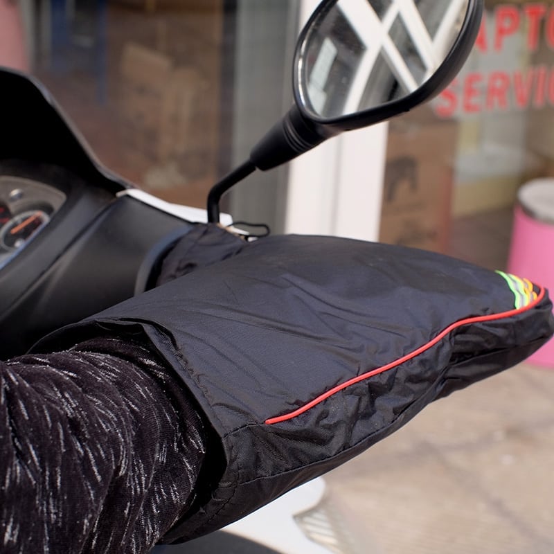 Αδιάβροχο αντιανεμικό κάλυμμα χεριών με ισοθερμική επένδυση, συνθετική γούνα. Τοποθετείτε εύκολα σε όλες τις χειρολαβές μοτοσυκλέτας και βοηθάει στην οδήγηση ακόμη και χωρίς χρήση γαντιών αναλόγως συνθηκών.