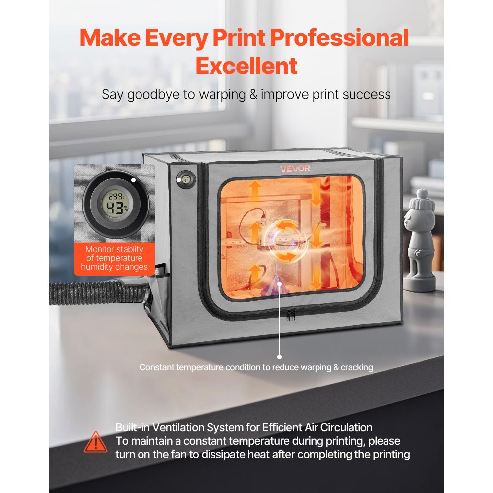 Σταθερή θερμοκρασία: Αυτό το περίβλημα τρισδιάστατου εκτυπωτή παρέχει σταθερή θερμοκρασία για να βοηθά τα αναλώσιμα να προσκολλώνται καλά. Περιλαμβάνει θερμοϋγρόμετρο για τη μείωση της στρέβλωσης και των ρωγμών. Μπορεί να μειώσει τον κίνδυνο απόφραξης και εμπλοκής, βελτιώνοντας την απόδοση. Ευρεία Συμβατότητα: Με διαστάσεις 31,5 x 22,83 x 22,83 ίντσες, η σκηνή τρισδιάστατου εκτυπωτή μας έχει σχεδιαστεί για A1 Combo. Αποτρέπει την εξάπλωση δυσάρεστων οσμών και επιβλαβών σωματιδίων κατά την εκτύπωση, με αποτέλεσμα την καθίζησή τους, ιδανική για εκτυπώσεις που χρησιμοποιούν αναλώσιμα υλικά όπως PLA, TPU και ABS. Μετρήστε τον εκτυπωτή σας πριν από την παραγγελία για να βεβαιωθείτε για τη συμβατότητα. Σύστημα εξαερισμού: Αυτή η θήκη τρισδιάστατου εκτυπωτή διαθέτει σύστημα εξαερισμού για την γρήγορη αποβολή καπνού και σκόνης μετά την εκτύπωση. Αποτρέπει την απελευθέρωση επιβλαβών αερίων και σωματιδίων στον αέρα του δωματίου, ενώ παράλληλα επιτυγχάνει γρήγορη ψύξη χωρίς μεγάλη αναμονή. Προσεγμένες λεπτομέρειες: Με υλικά επιβράδυνσης φλόγας και σταθερό δομικό σχεδιασμό, αυτό το περίβλημα εκτυπωτή μειώνει τον κίνδυνο ατυχημάτων. Η κλειστή δομή του εμποδίζει την είσοδο σκόνης, αποτρέποντας παράλληλα την τυχαία επαφή. Ευκρινής ορατότητα: Το περίβλημα του εκτυπωτή μας διαθέτει ένα διαφανές παράθυρο και ενσωματωμένο φως LED, παρέχοντας ευκρινή ορατότητα της διαδικασίας εκτύπωσης. Σας επιτρέπει να παρακολουθείτε τις εκτυπώσεις και να αντιμετωπίζετε προβλήματα άμεσα, ακόμη και σε συνθήκες χαμηλού φωτισμού.
