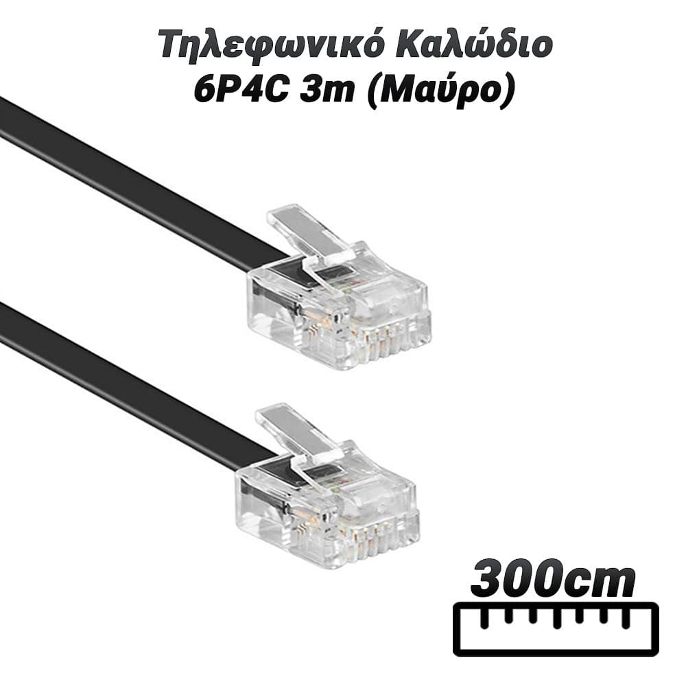 Τηλεφωνικό Καλώδιο 6P4C 3m (Μαύρο)