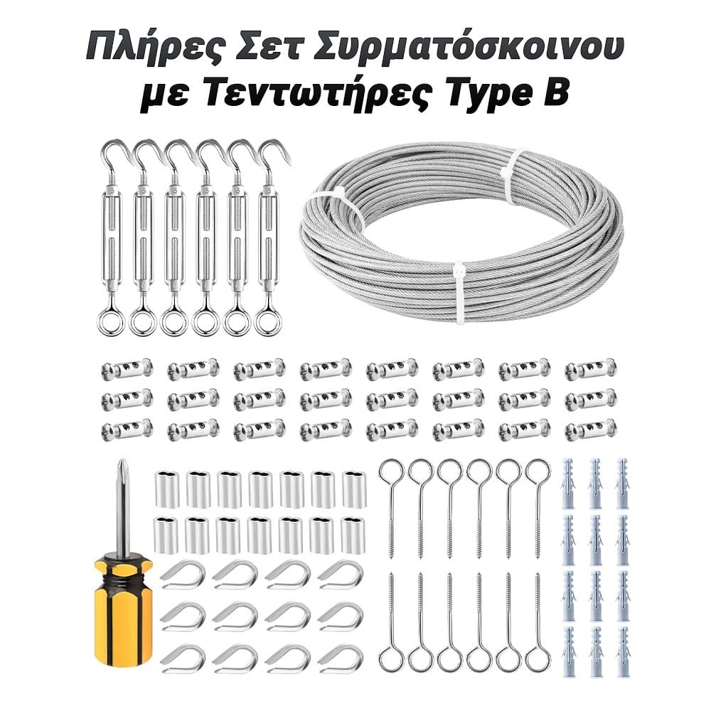 Καλώδιο από ανοξείδωτο χάλυβα 3 mm μήκους 30 m12 x δαχτυλήθρες συρματόσχοινου12 x βιδωτά άγκιστρα με βιδωτό μπουλόνι Μ5 80 mm14 x μανίκι βρόχου πρεσαρίσματος αλουμινίου24 x σφιγκτήρας συρματόσχοινου 3 mm1 x κατσαβίδι. Κατασκευασμένο από ανοξείδωτο χάλυβα 304, το οποίο το καθιστά ανθεκτικό στις καιρικές συνθήκες, αδιάβροχο, ανθεκτικό στη σκουριά και τη διάβρωση. Μπορεί εύκολα να κοπεί στο επιθυμητό μήκος. Το κιτ καλωδίων από ανοξείδωτο χάλυβα 3mm μπορεί να χρησιμοποιηθεί για εξωτερικά κιγκλιδώματα, υποστήριξη κρεμασμένου εξωτερικού φωτισμού, παροχή υποστήριξης καλωδίου κήπου για αναρριχώμενα φυτά, δημιουργία συρμάτινης πέργκολας για τον κήπο, σύρμα φράχτη, κρεμαστό καλώδιο για φωτογραφία, κρεμαστό καλώδιο κουρτίνας που θα εγκατασταθεί σε πέργκολα ή σε εσωτερικούς χώρους, κατάλληλο για πολλά έργα που θέλετε να κάνετε!