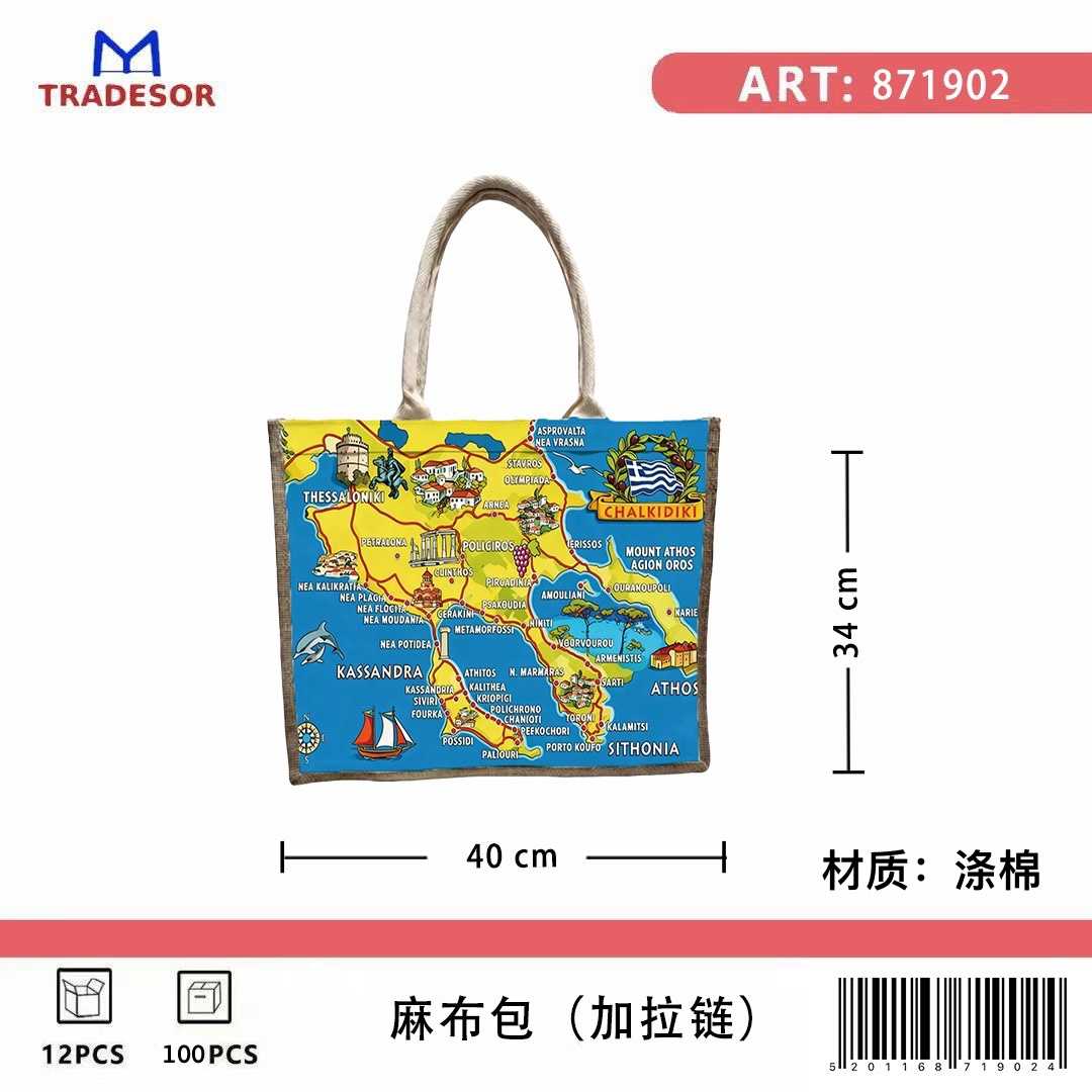 Τουριστική τσάντα λινή με φερμουάρ - Chalkidiki - 40*34*19cm - 871902