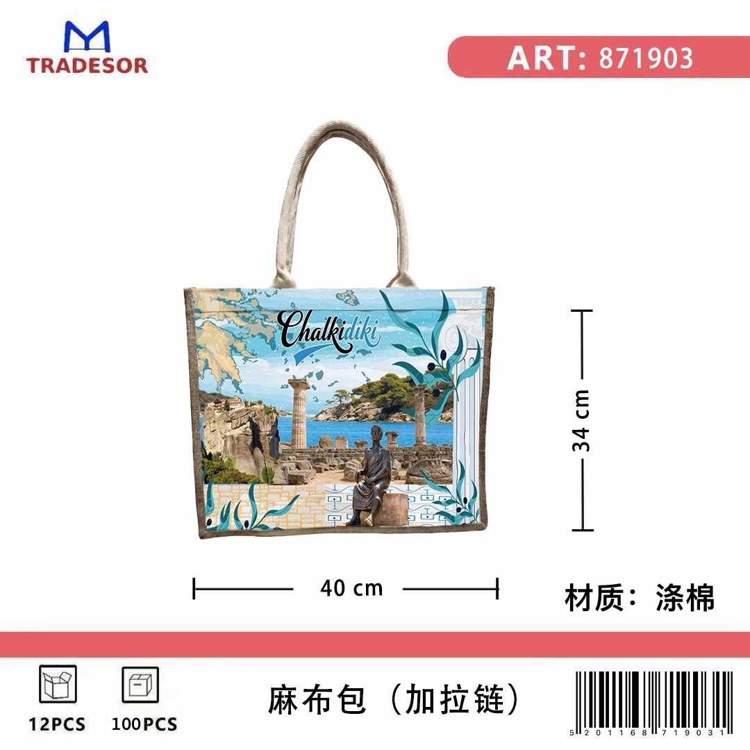 Τουριστική τσάντα λινή με φερμουάρ - Chalkidiki - 40*34*19cm - 871903