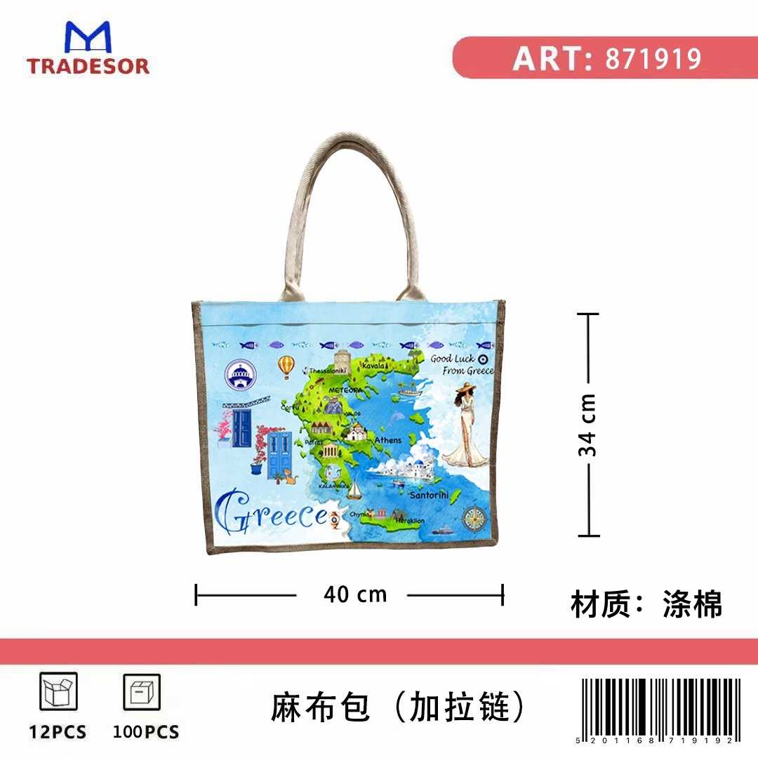 Τουριστική τσάντα λινή με φερμουάρ - Greece - 40*34*19cm - 871919