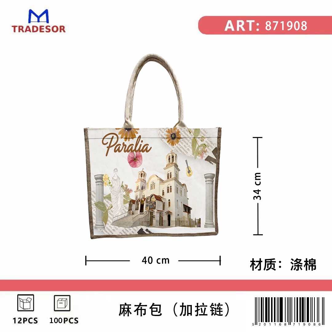 Τουριστική τσάντα λινή με φερμουάρ - Paralia - 40*34*19cm - 871908