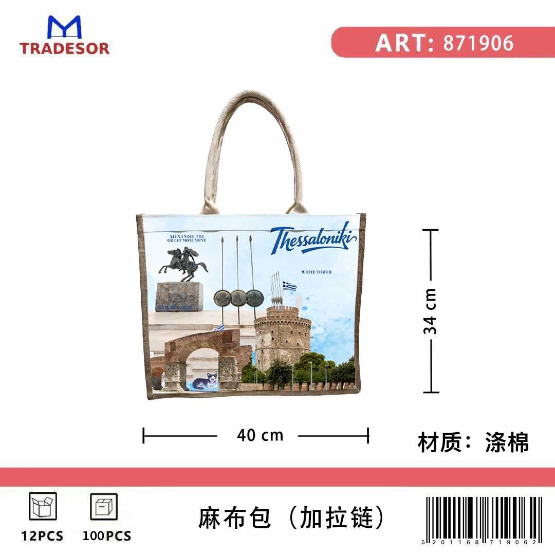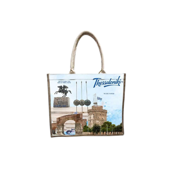 Τουριστική τσάντα λινή με φερμουάρ - Thessaloniki - 40*34*19cm - 871906