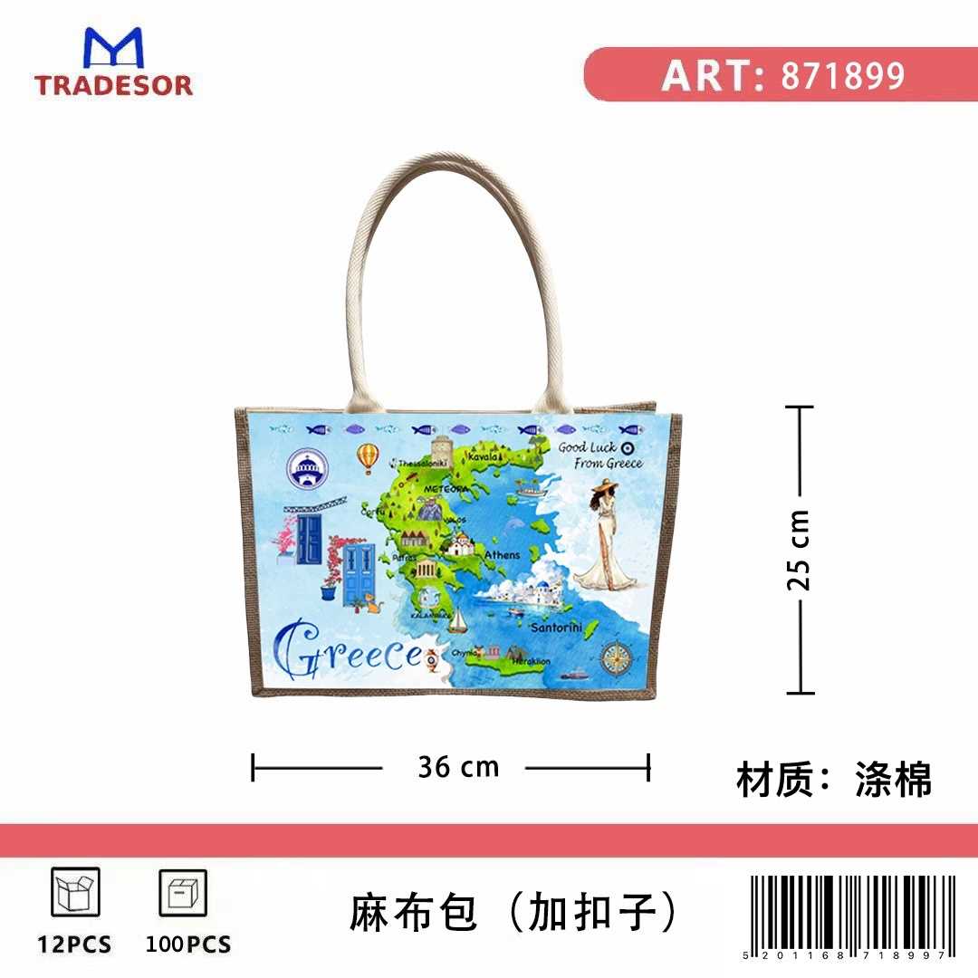 Τουριστική τσάντα λινή με κουμπί - Greece - 36*25*16cm - 871899