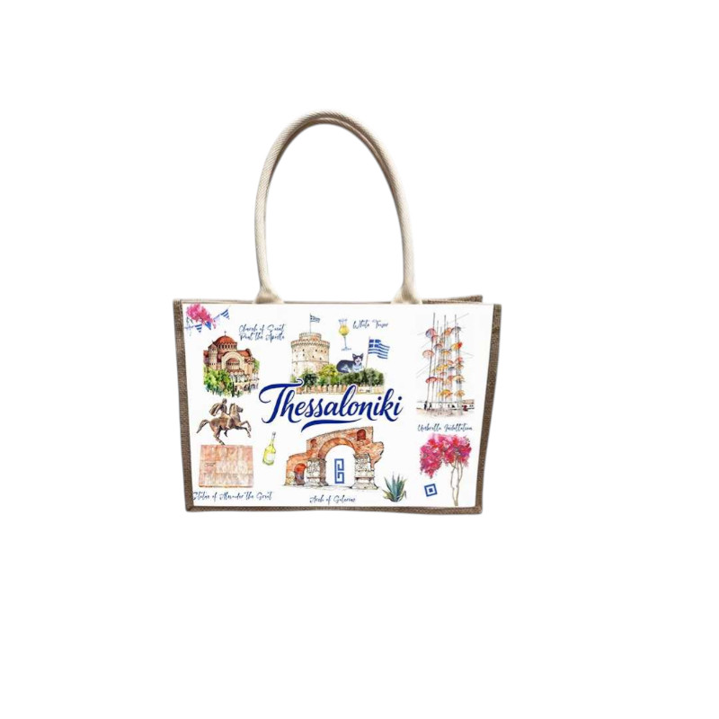 Τουριστική τσάντα λινή με κουμπί - Thessaloniki - 36*25*16cm - 871884