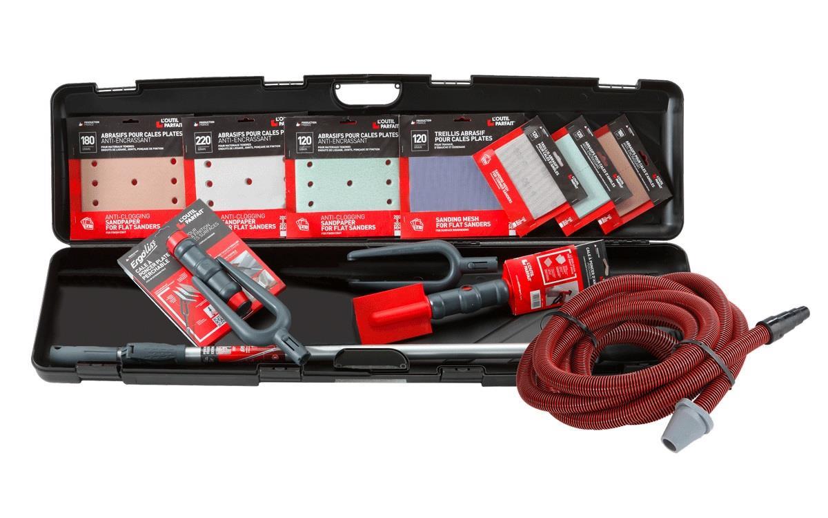 Τριβεία σετ 74τεμ. ERGOLISS. Περιέχει 1 τριβείο τοίχου πλακέ 20Χ20cm, 1 τριβείο γωνιών τοίχου, 1 τηλεσκοπικό κοντάρι 2X1m, 1 σωλήνα για σκούπα 5m, απο 10 γυαλόχαρτα Νο120, Νο180, Νο220 και 10 γιαλόχαρτα πλέγμα Νο120 για το πλακέ τριβείο και απο 10 γυαλόχα