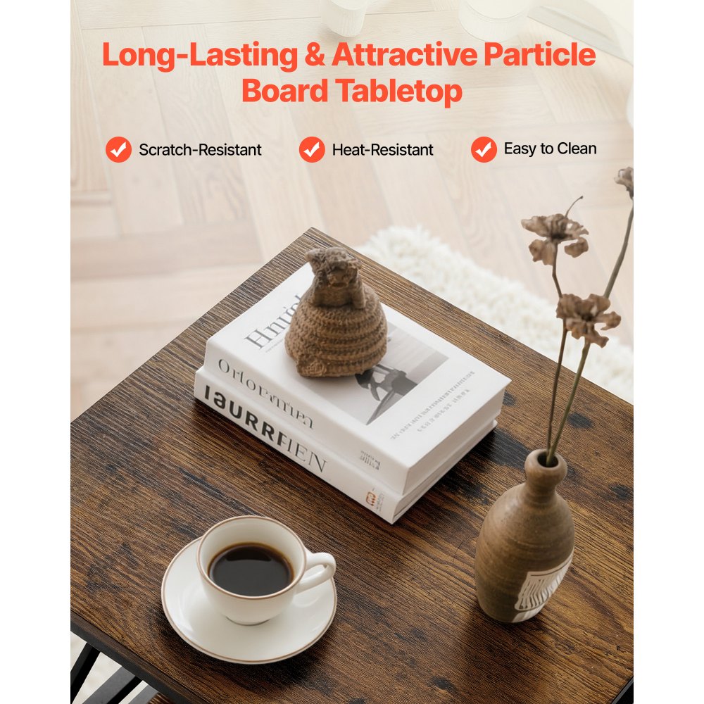 Ευρύχωρος αποθηκευτικός χώρος: Με σχεδιασμό ανοιχτών ραφιών, το μεταλλικό τραπεζάκι προσφέρει εύκολη πρόσβαση σε αντικείμενα στην επιφάνεια του τραπεζιού, όπως τηλέφωνα, tablet ή καφέ, ενώ τα χαμηλότερα ράφια αποθηκεύουν βιβλία, ποτήρια, σνακ ή χαρτομάντιλα. Βοηθά να διατηρείτε το σπίτι σας οργανωμένο και χωρίς ακαταστασία. Σύγχρονο Βιομηχανικό Στυλ: Διαθέτοντας επιφάνεια από φυσικό ξύλο με λεία, εκλεπτυσμένη υφή, αυτό το βοηθητικό τραπέζι είναι κατασκευασμένο με γεωμετρικό μεταλλικό σκελετό για μια μοναδική βιομηχανική πινελιά. Είναι ιδανικό για να απολαμβάνετε χαλαρωτικές στιγμές με φίλους και οικογένεια. Ανθεκτικό και Στιβαρό: Με ένα παχύ μεταλλικό σκελετό, αυτό το κομοδίνο είναι σταθερό. Το φινίρισμα βαφής υψηλής θερμοκρασίας προστατεύει από τη σκουριά και τη διάβρωση. Η λεία, ανθεκτική στην υγρασία επιφάνεια από μοριοσανίδα και τα 4 ρυθμιζόμενα πόδια αποτρέπουν την ταλάντωση σε ανώμαλα δάπεδα. Ταιριάζει σε κάθε χώρο: Είτε χρησιμοποιείται στο σαλόνι, στο δωμάτιο επισκεπτών είτε στο γραφείο, η βάση τραπεζιού μας λειτουργεί τέλεια ως βοηθητικό τραπεζάκι, τραπεζάκι σαλονιού ή κομοδίνο. Η vintage εμφάνισή της συνδυάζεται άψογα με μια ποικιλία επίπλων και στυλ διακόσμησης. Εύκολη συναρμολόγηση και καθάρισμα: Αυτό το κομοδίνο διαθέτει πλήρη εξοπλισμό και σαφείς οδηγίες για γρήγορη συναρμολόγηση. Η επιφάνεια από μοριοσανίδα καθαρίζεται εύκολα για να παραμένει σαν καινούργια. Σημείωση: Τα πραγματικά χρώματα του προϊόντος ενδέχεται να διαφέρουν λόγω διαφορών φωτισμού και οθόνης.