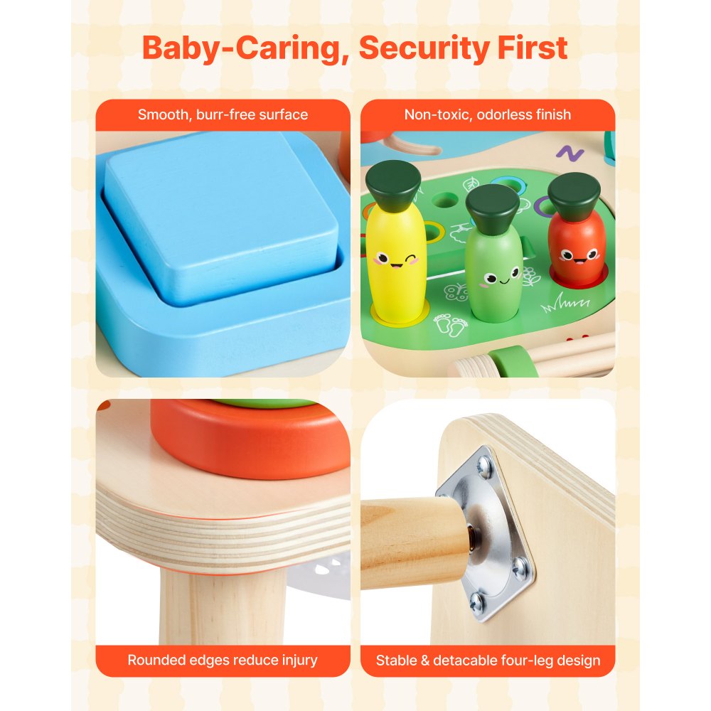 Πλήρης Αισθητηριακή Μάθηση Montessori: Αυτό το τραπέζι εκμάθησης Montessori συνδυάζει σχήματα, υφές και ήχους για ηλικίες 6+ μηνών! Κάθε άγγιγμα ενισχύει τον συντονισμό χεριού-ματιού, τις πρώτες λέξεις και την οπτική παρακολούθηση - ποιος ήξερε ότι η μάθηση θα μπορούσε να είναι τόσο διασκεδαστική. Κέντρο Μάθησης 13 σε 1: Τα παιδιά εξερευνούν ένα ξυλόφωνο, έναν αναδιπλούμενο καθρέφτη, γρανάζια, μια ράγα για χάντρες, τα τουβλάκια ταξινόμησης, τους δίσκους στοίβαξης, το τράβηγμα καρότων, ένα σετ ψαρέματος και πολλά άλλα - τόσοι πολλοί τρόποι για να αναπτύξουν λεπτές κινητικές δεξιότητες και πρώιμη γνωστική λειτουργία. Ποιοτική κατασκευή από ξύλο: Το τραπέζι δραστηριοτήτων Montessori χρησιμοποιεί ξύλο πάχους 0,6 ιντσών με φινίρισμα χαμηλής οσμής και η στιβαρή κατασκευή του αντέχει στο καθημερινό παιχνίδι, ώστε τα μικρά χεράκια να μπορούν να εξερευνούν με σιγουριά. Λεπτομέρειες με προτεραιότητα την ασφάλεια: Το τραπέζι εκμάθησης για νήπια διαθέτει ομαλή λείανση, στρογγυλεμένες γωνίες και σταθερή βάση με τέσσερα πόδια για τη μείωση των χτυπημάτων και των ανατροπών. Τα αποσπώμενα πόδια κάνουν την εγκατάσταση ή την αποθήκευση πανεύκολη. Διασκέδαση έτοιμη για δώρα: Το τραπέζι δραστηριοτήτων για νήπια προσκαλεί τα παιδιά να δημιουργήσουν ήχους και ιστορίες, να μοιραστούν συναισθήματα και να πυροδοτήσουν τη φαντασία τους—συμπεριλαμβανομένων στιγμιαίων χαμόγελων! Ποιος είναι έτοιμος για το επόμενο μίνι αριστούργημα;