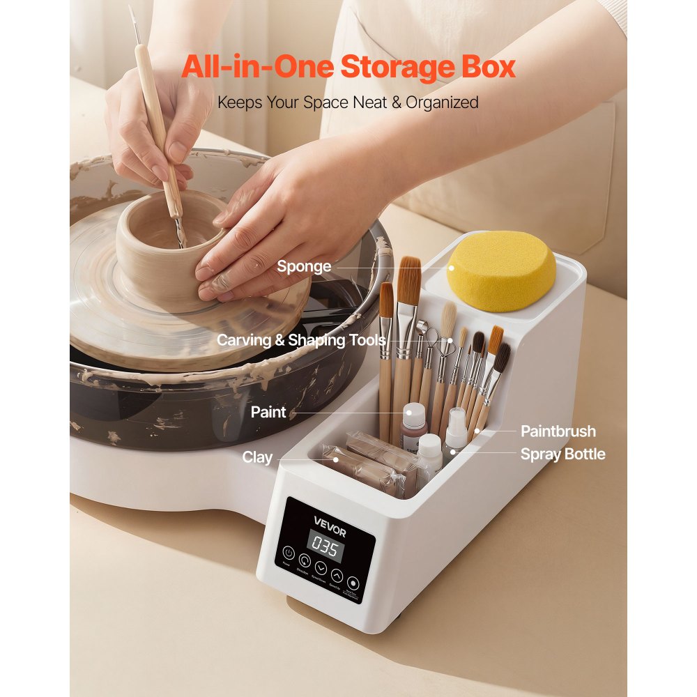 Ευρύχωρος & Ανθεκτικός Χώρος Εργασίας: Ιδανικός για αρχάριους που στοχεύουν ψηλά, αυτός ο τροχός κεραμικής διαθέτει περιστρεφόμενες πλάκες 11" και 14" για άφθονο χώρο διαμόρφωσης. Ο κινητήρας 450W παρέχει σταθερή ισχύ, χειριζόμενος έως και 11 λίβρες πηλού για ομαλά, επαγγελματικά αποτελέσματα. Σχεδιασμός που εξοικονομεί χώρο: Κατασκευασμένος για να αξιοποιήσει στο έπακρο τη δημιουργικότητά σας, αυτός ο τροχός κεραμικής για ενήλικες διαθέτει μια καινοτόμο επιφάνεια που είναι 50% μικρότερη από τα παραδοσιακά μοντέλα, συμβάλλοντας στην εξοικονόμηση πολύτιμου εσωτερικού χώρου. Είναι εύκολος στη μεταφορά και την αποθήκευση οπουδήποτε. Ενσωματωμένη αποθήκευση εργαλείων: Ο ηλεκτρικός τροχός κεραμικής μας σας κρατά συγκεντρωμένους στην τέχνη σας. Το κουτί αποθήκευσης διπλής στρώσης στη δεξιά πλευρά διατηρεί τα εργαλεία κοπής, τα χρώματα και τα απαραίτητα σε κοντινή απόσταση, μειώνοντας την ακαταστασία για μια ομαλή και αδιάλειπτη δημιουργική ροή εργασίας. Πεντάλ ποδιού με άμεση απόκριση: Το προηγμένο πεντάλ εφέ Hall του κεραμικού τροχού παρέχει απίστευτα ομαλή επιτάχυνση και επιβράδυνση χωρίς καθυστέρηση από 30-300 σ.α.λ., μεταφράζοντας τις ανεπαίσθητες κινήσεις των ποδιών σας σε ακριβή έλεγχο για λεπτομερή καλλιτεχνική έκφραση. Ιδανικό Δώρο: Αυτός ο τροχός κεραμικής περιλαμβάνει ένα σετ εργαλείων 8 τεμαχίων από ανοξείδωτο ατσάλι, ένα σετ εργαλείων 8 τεμαχίων από ξύλο και μια ποδιά - όλα όσα χρειάζεται ένας αρχάριος. Αποτελεί ένα προσεγμένο δώρο για ζευγάρια, οικογένειες και φίλους, ιδανικό για να κάνετε έκπληξη στα αγαπημένα σας πρόσωπα.