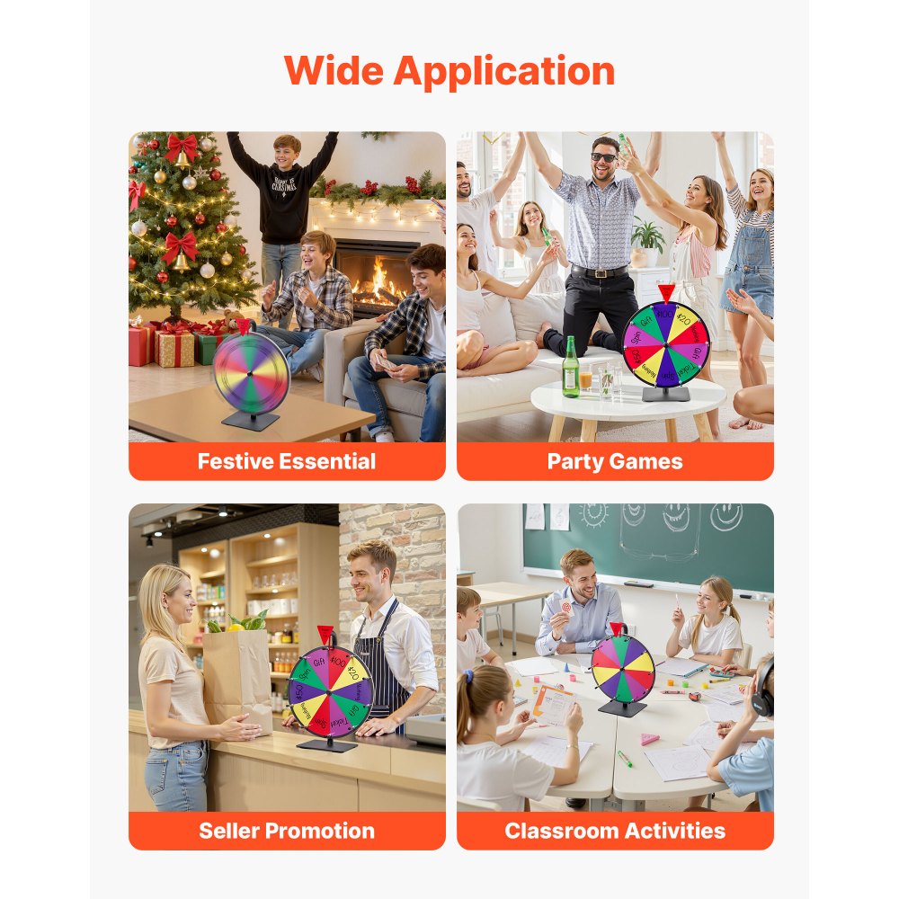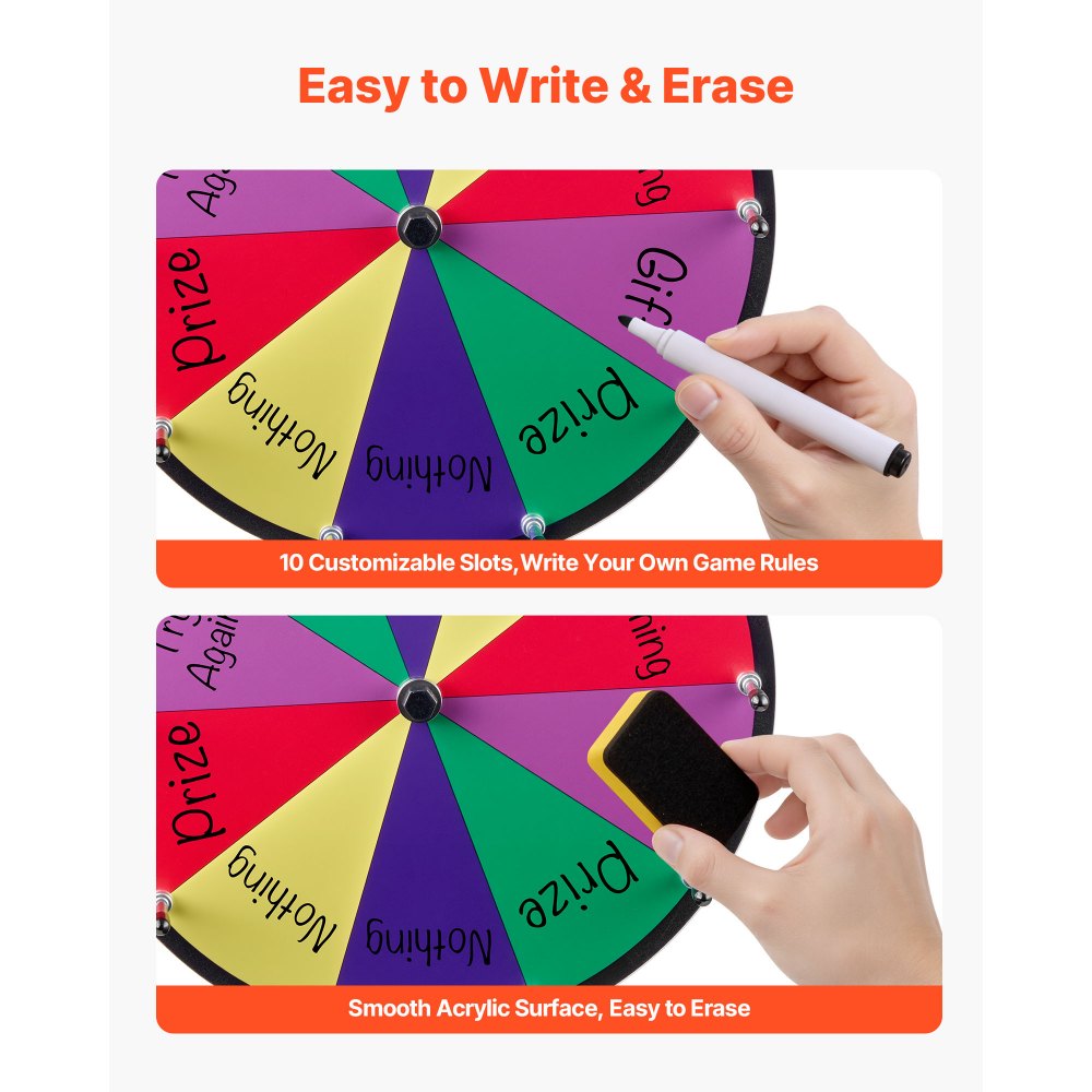 Προσαρμόσιμο και επεξεργάσιμο: 10 θέσεις για να εξατομικεύσετε τα παιχνίδια σας. Ομαλός, επανεγγράψιμος πίνακας με ζωντανά χρώματα κάνει τον τροχό βραβείων σας να ξεχωρίζει σε κάθε εκδήλωση. Συναρπαστική Ατμόσφαιρα: Θέλετε να ζωντανέψετε την εκδήλωσή σας; Ο περιστρεφόμενος τροχός βραβείων μας παράγει έναν καθαρό ήχο κλικ καθώς περιστρέφεται, ενισχύοντας την ένταση και τον ενθουσιασμό, προσελκύοντας πλήθη και διατηρώντας τους παίκτες αφοσιωμένους. Ομαλή περιστροφή: Τα ρουλεμάν ακριβείας εξασφαλίζουν ομαλές περιστροφές, ενώ η σταθερή και αντιολισθητική βάση κρατά τον τροχό ασφαλή κατά τη διάρκεια του παιχνιδιού, παρέχοντας μια ασφαλή και συναρπαστική εμπειρία σε κάθε στροφή. Φορητό και εξοικονόμηση χώρου: Ο συμπαγής και ελαφρύς σχεδιασμός καθιστά τον περιστρεφόμενο τροχό εύκολο στη μεταφορά και την κίνηση, ιδανικό για προωθητικές ενέργειες σε καταστήματα, αίθουσες διδασκαλίας, πάρτι και παιχνίδια σε φεστιβάλ. Εύκολη συναρμολόγηση: Συνοδεύεται από όλα τα απαραίτητα εξαρτήματα και αξεσουάρ, επιτρέποντας γρήγορη και εύκολη εγκατάσταση. Δεν απαιτούνται επιπλέον εργαλεία. Ετοιμαστείτε να γυρίσετε τον τροχό και να ξεκινήσετε τη διασκέδαση.