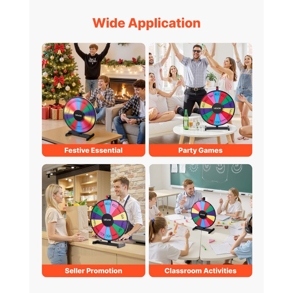 Προσαρμόσιμο και επεξεργάσιμο: 14 υποδοχές για να εξατομικεύσετε τα παιχνίδια σας. Ομαλός, επανεγγράψιμος πίνακας με ζωντανά χρώματα κάνει τον τροχό βραβείων σας να ξεχωρίζει σε κάθε εκδήλωση. Συναρπαστική Ατμόσφαιρα: Θέλετε να ζωντανέψετε την εκδήλωσή σας; Ο περιστρεφόμενος τροχός βραβείων μας παράγει έναν καθαρό ήχο κλικ καθώς περιστρέφεται, ενισχύοντας την ένταση και τον ενθουσιασμό, προσελκύοντας πλήθη και διατηρώντας τους παίκτες αφοσιωμένους. Ομαλή περιστροφή: Τα ρουλεμάν ακριβείας εξασφαλίζουν ομαλές περιστροφές, ενώ η σταθερή και αντιολισθητική βάση κρατά τον τροχό ασφαλή κατά τη διάρκεια του παιχνιδιού, παρέχοντας μια ασφαλή και συναρπαστική εμπειρία σε κάθε στροφή. Φορητό και εξοικονόμηση χώρου: Ο συμπαγής και ελαφρύς σχεδιασμός καθιστά τον περιστρεφόμενο τροχό εύκολο στη μεταφορά και την κίνηση, ιδανικό για προωθητικές ενέργειες σε καταστήματα, αίθουσες διδασκαλίας, πάρτι και παιχνίδια σε φεστιβάλ. Εύκολη συναρμολόγηση: Συνοδεύεται από όλα τα απαραίτητα εξαρτήματα και αξεσουάρ, επιτρέποντας γρήγορη και εύκολη εγκατάσταση. Δεν απαιτούνται επιπλέον εργαλεία. Ετοιμαστείτε να γυρίσετε τον τροχό και να ξεκινήσετε τη διασκέδαση.