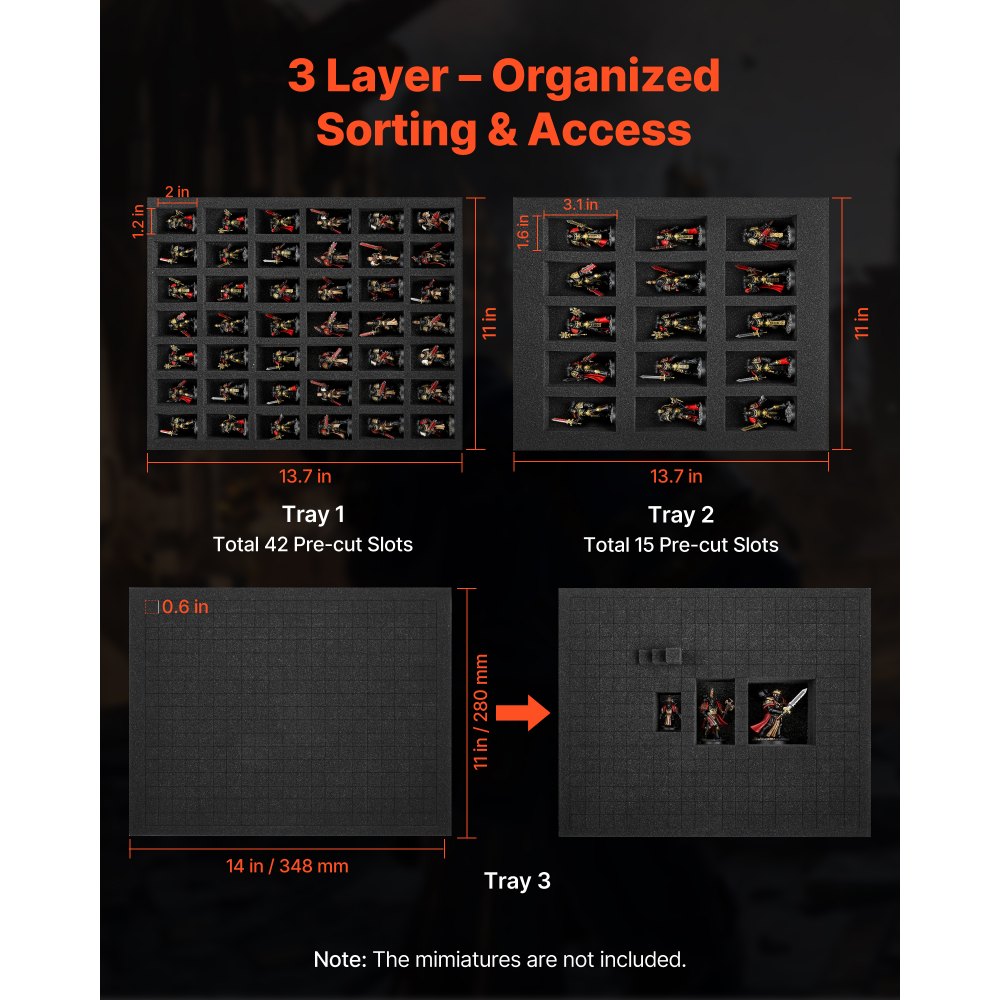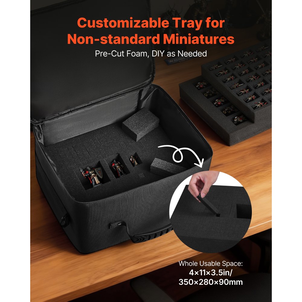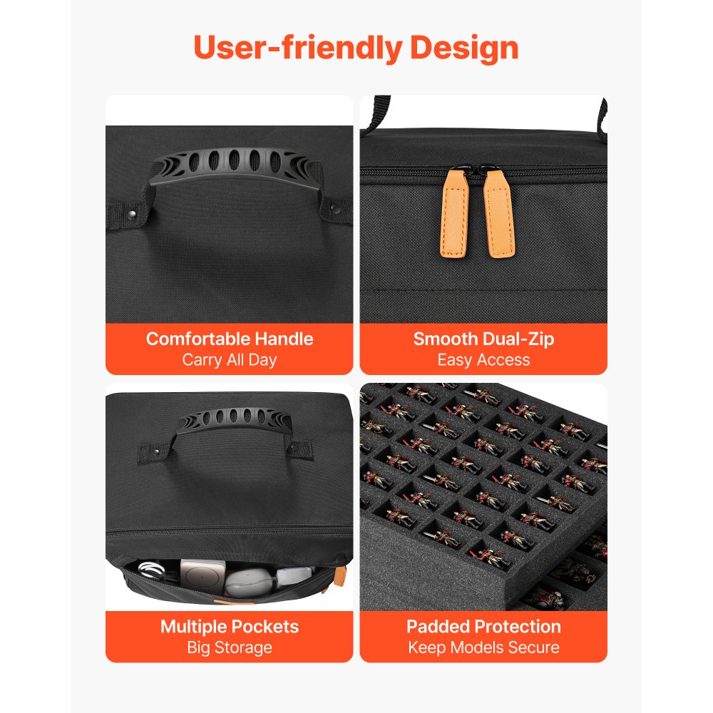 Μεγάλη χωρητικότητα: Αυτή η μικροσκοπική τσάντα αποθήκευσης έχει διαστάσεις 15,4 x 12,6 x 8,7 ίντσες και χωράει συλλογές κλίμακας 1:500–1:750. Μπορείτε να συσκευάσετε περισσότερα μίνι και να διατηρείτε την έκθεση και τον αποθηκευτικό χώρο τακτοποιημένα για ταξίδια ή βραδιές παιχνιδιών. Εφαρμογή 3 στρώσεων: Αυτή η μικροσκοπική τσάντα μεταφοράς χρησιμοποιεί αφρό από βαμβάκι με περλέ υφή και προκομμένο πάνω μέρος με 57 υποδοχές, ένα πρακτικό δεύτερο στρώμα και ένα τρίτο στρώμα που μπορεί να κοπεί. Προσαρμόζετε τα διαμερίσματα σε διαφορετικά μεγέθη μοντέλων για εύκολη μεταφορά. Προστατευτική κατασκευή: Το αδιάβροχο ύφασμα Oxford της μικροσκοπικής τσάντας μεταφοράς μας συνδυάζεται με ελαφρύ, απορροφητικό αφρό. Αποτρέπει τη βροχή, τη σκόνη και την υγρασία και προστατεύει τα μοντέλα από χτυπήματα, βοηθώντας τα να παραμένουν ασφαλή κατά τη μεταφορά. Φιλική προς το χρήστη μεταφορά: Η επενδεδυμένη λαβή και ο ιμάντας ώμου προσφέρουν βάρος ισορροπίας, ενώ τα διπλά φερμουάρ επιταχύνουν την πρόσβαση. Οι επιπλέον τσέπες της τσάντας μεταφοράς σάς επιτρέπουν να μεταφέρετε κάρτες, εργαλεία και άλλα αξεσουάρ σε ένα τακτοποιημένο ταξίδι. Επιλογή για δώρο: Αυτή η μικροσκοπική τσάντα επίδειξης ενθουσιάζει τους λάτρεις των χόμπι. Προσφέρετε προσεγμένη αποθήκευση στα γενέθλια και τις γιορτές και κάνετε κάθε συλλογή να φαίνεται τακτοποιημένη και έτοιμη για ταξίδι.