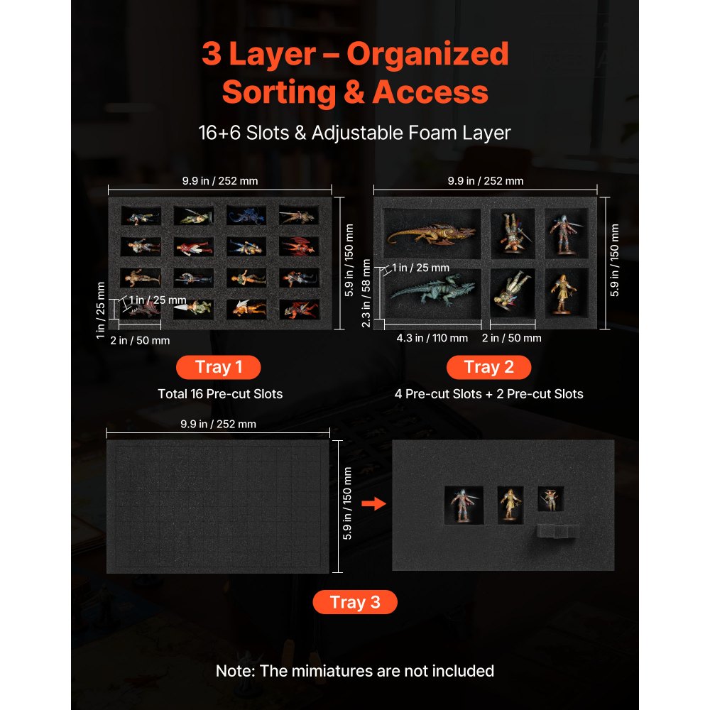 Μεγάλη Χωρητικότητα: Αυτή η μικροσκοπική τσάντα αποθήκευσης έχει διαστάσεις 11,4 x 9,8 x 21,7 ίντσες και χωράει περίπου 58 μίνι πεζικού. Διατηρείτε μια μεγάλη συλλογή τακτοποιημένη, εύκολη στην ταξινόμηση και έτοιμη για ταξίδια ή παιχνίδι. Ευέλικτη εφαρμογή 3 στρώσεων: Η μικροσκοπική τσάντα μεταφοράς μας διαθέτει αφρό από περλέ βαμβάκι με προκομμένο πάνω μέρος 22 θέσεων, ένα πρακτικό δεύτερο στρώμα και ένα τρίτο στρώμα που μπορεί να κοπεί για να προσαρμόζεται σε διαφορετικά μεγέθη μοντέλων και μεταβαλλόμενες ανάγκες. Καμβάς & Πυρήνας Μαξιλαριού: Η μικροσκοπική τσάντα μεταφοράς μας διαθέτει ένα αδιάβροχο κέλυφος από καμβά και ελαφρύ, απορροφητικό αφρό. Αποτρέπει τη βροχή, τη σκόνη και την υγρασία και μειώνει τους κραδασμούς από το δρόμο για να βοηθήσει στην ασφάλεια των μοντέλων. Φιλική προς το χρήστη μεταφορά: Πιάνετε μια άνετη λαβή, ισορροπείτε το βάρος με τον ιμάντα ώμου και κλείνετε γρήγορα με διπλά φερμουάρ. Οι πολλαπλές τσέπες της τσάντας μεταφοράς μας σάς επιτρέπουν να μεταφέρετε βιβλία, οδηγούς, σημειωματάρια, οθόνες και στυλό. Επιλογή για δώρο: Αυτή η μικροσκοπική τσάντα επίδειξης ενθουσιάζει τους λάτρεις των χόμπι. Προσφέρετε προσεγμένη αποθήκευση στα γενέθλια και τις γιορτές και κάνετε κάθε συλλογή να φαίνεται τακτοποιημένη και έτοιμη για ταξίδι.