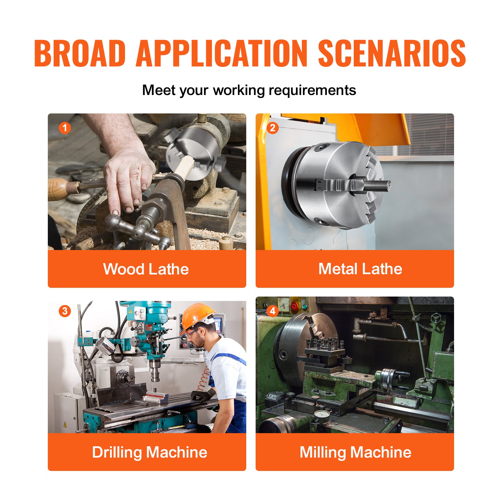 Ανώτερο υλικό HT300: Το τσοκ τόρνου 3 σιαγόνων μας είναι κατασκευασμένο από υλικό HT300, σιαγόνα τσοκ από χάλυβα 20Cr με σκληρότητα 53HRC και κύλινδρο χάλυβα 40Cr με σκληρότητα 45HRC. Το τσοκ τόρνου σβήνει σκληρυμένο για ανώτερη σκληρότητα και αντοχή στη σκουριά, παρέχοντας εξαιρετική απόδοση εργασίας και αξιοπιστία τόσο για μικρά όσο και για μεγάλα τεμάχια εργασίας.