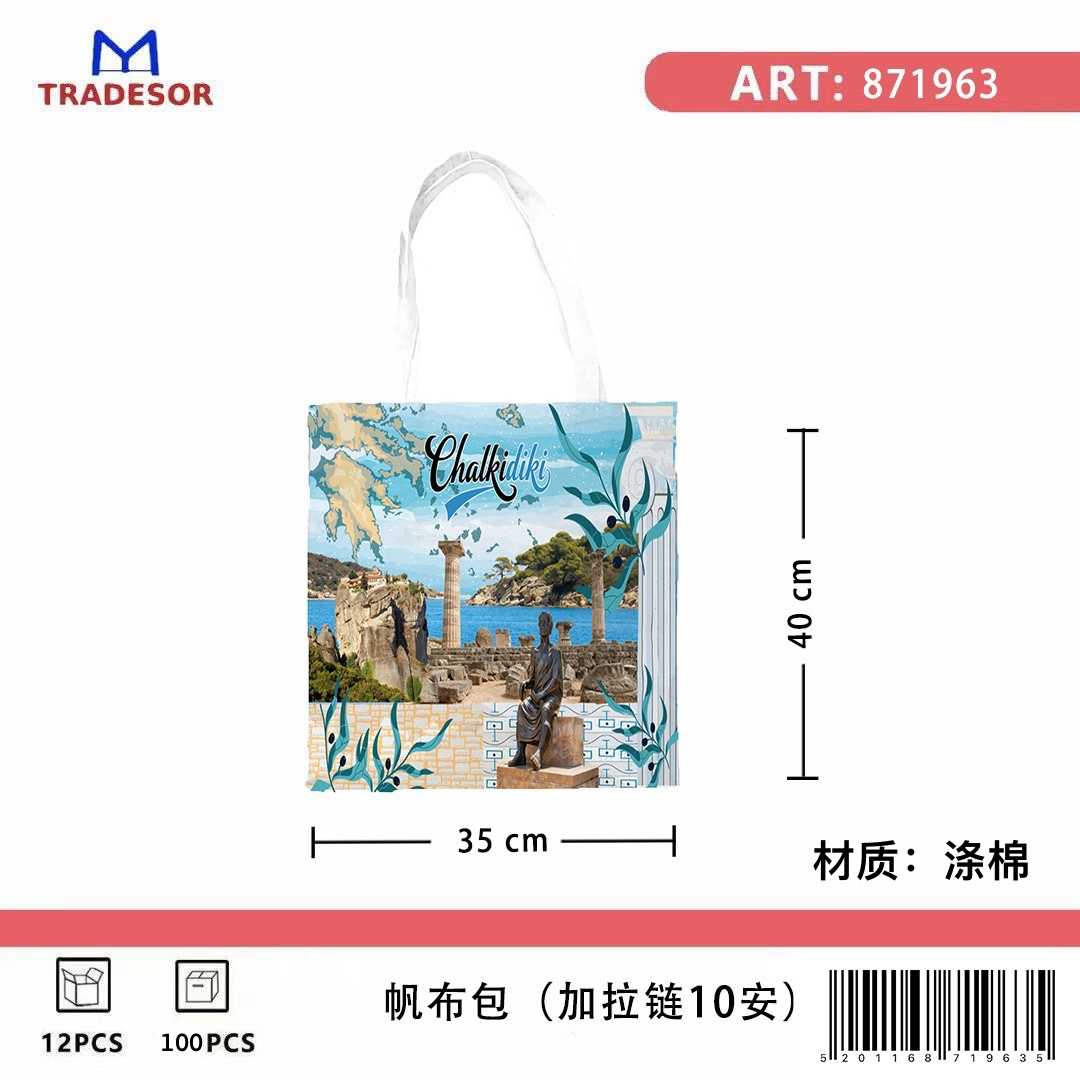 Υφασμάτινη τουριστική τσάντα καμβάς με φερμουάρ - Chalkidiki - 35*40cm - 871963