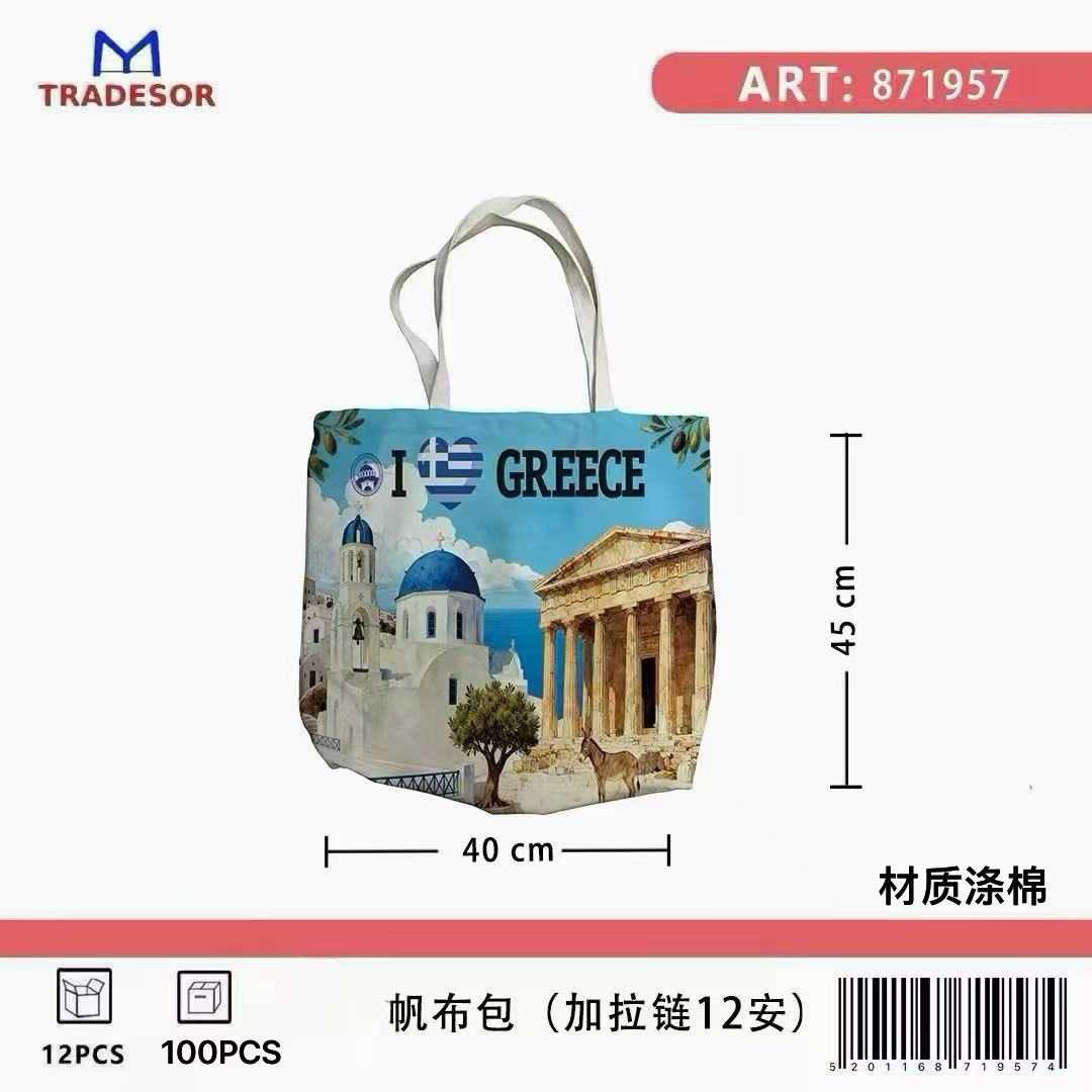 Υφασμάτινη τουριστική τσάντα καμβάς με φερμουάρ - Greece - 45*40*10cm - 871957