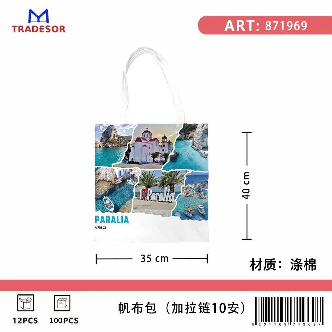Υφασμάτινη τουριστική τσάντα καμβάς με φερμουάρ - Paralia - 35*40cm - 871969