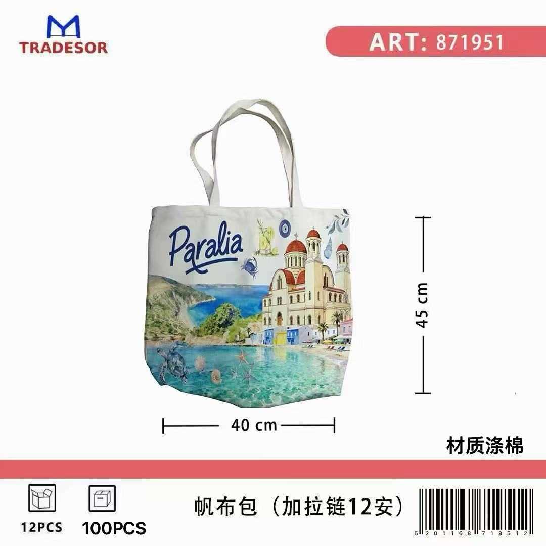 Υφασμάτινη τουριστική τσάντα καμβάς με φερμουάρ - Paralia - 45*40*10cm - 871951