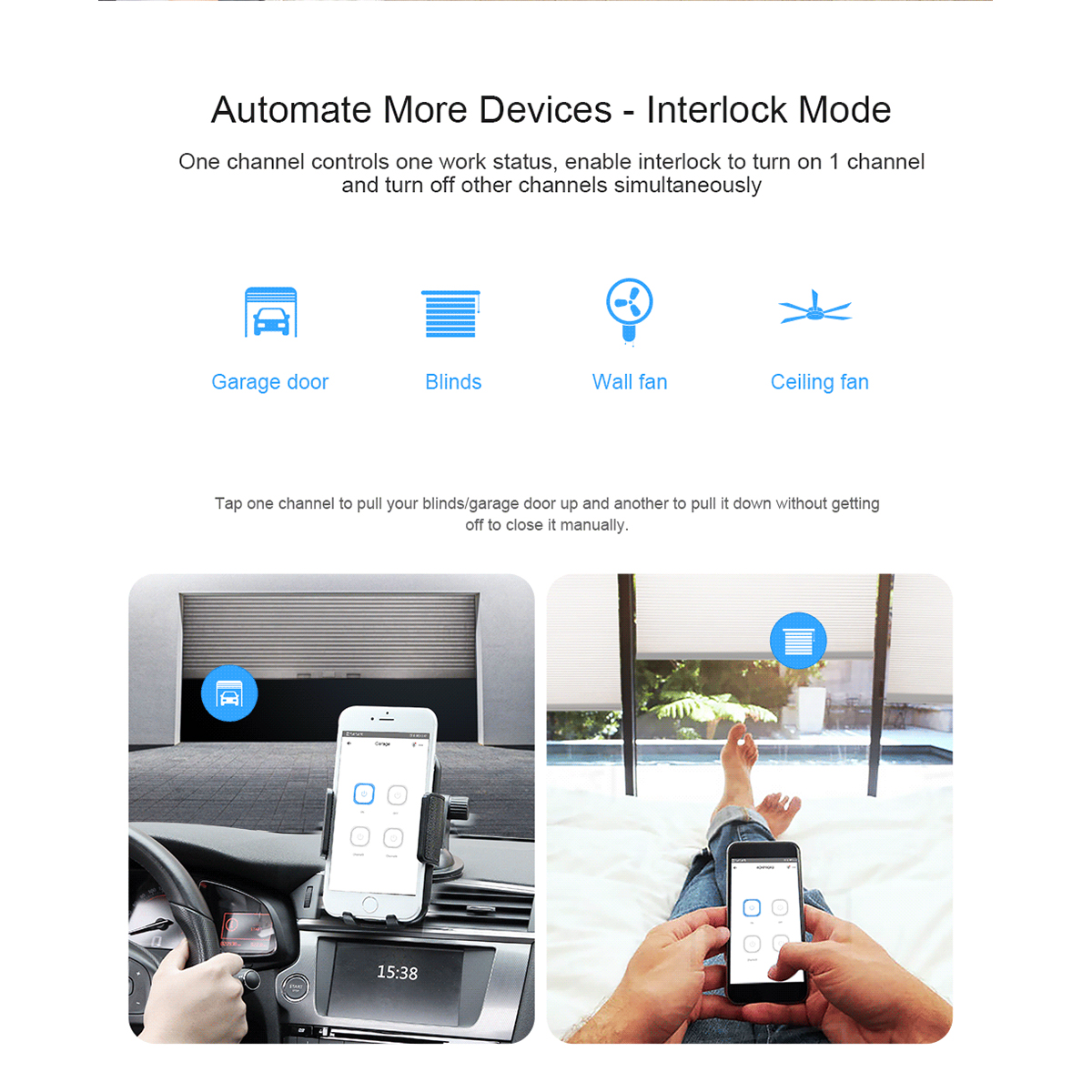 GloboStar® 80010 SONOFF 4CHR3 - Wi-Fi Smart Switch DIY Four Way 4 Gang - 4 Output Channel